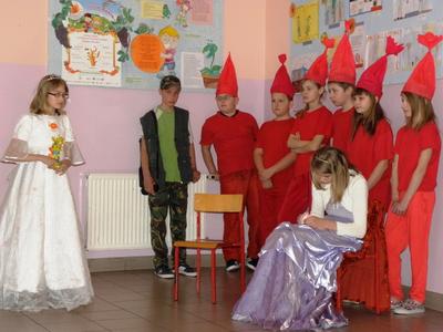 Uczniowie III Gimnazjum kończąc edukację w tej szkole przygotowali pokaz slajdów, w którym przedstawili chwile wspólnie spedzone począwszy od klasy "0" do III gimnazjalnej. Uczniowie w dowód wdzięczności wręczyli kwiaty nuczycielom oraz pracownikom szkoły i co jest w zwyczaju - sami otrzymali maskotki od klasy II. Dyrektor szkoły wręczył świadectwa absolwentom gimnazjum a także absolwentom szkoły podstawowej a nastepnie nagrody książkowe oraz świadectwa z czerwonym paskiem. Pozostałe świadectwa wręczali wychowawcy w salach lekcyjnych tuż po części artystycznej. Pan Wójt życzył zgromadzonym udanych wakacji zwracającąc szczególną uwagę na program "Bezpieczne Wakacje".