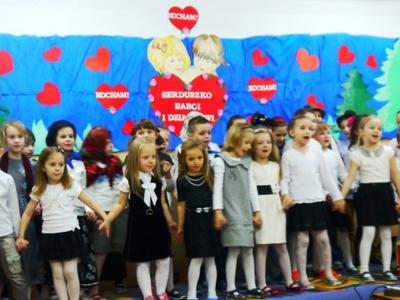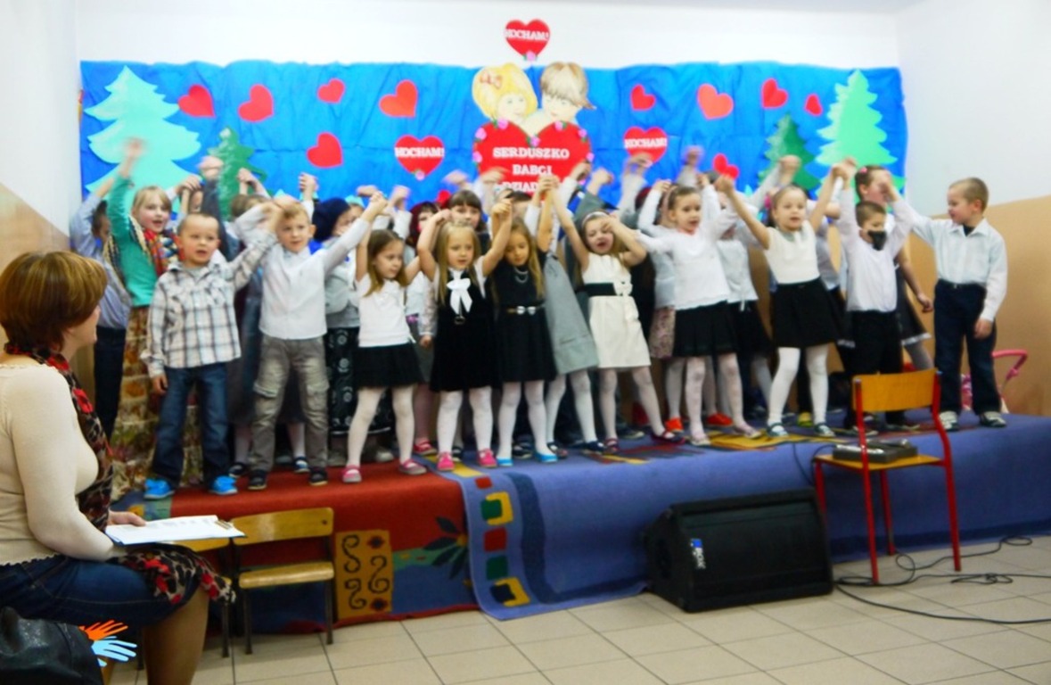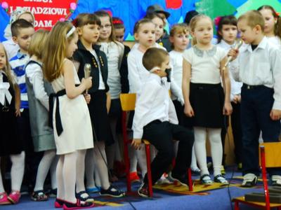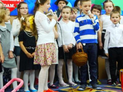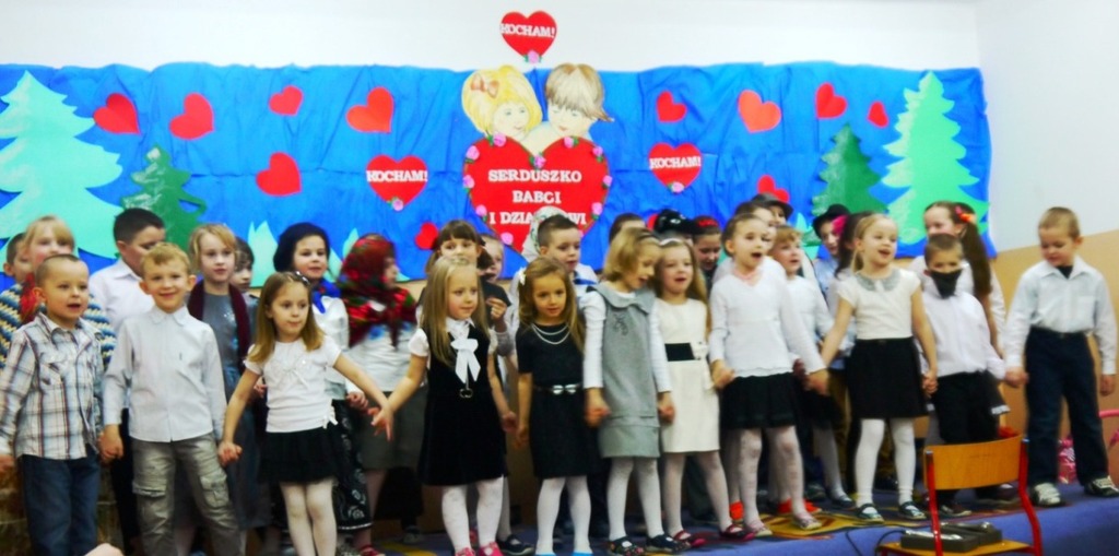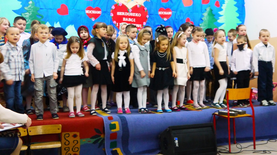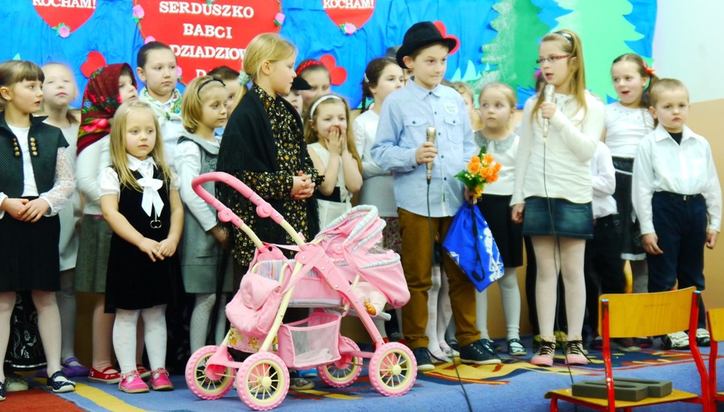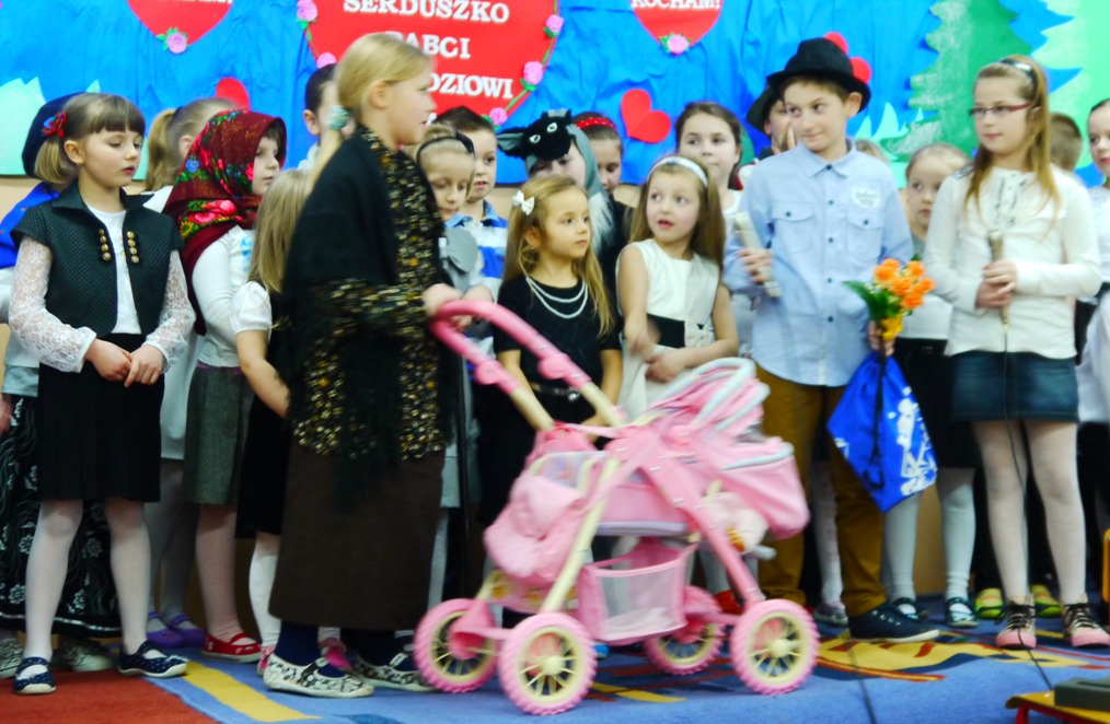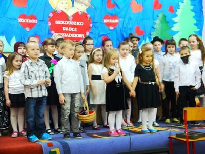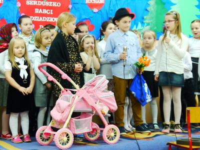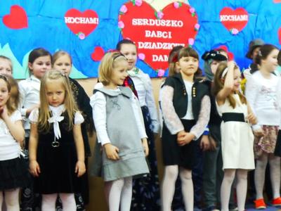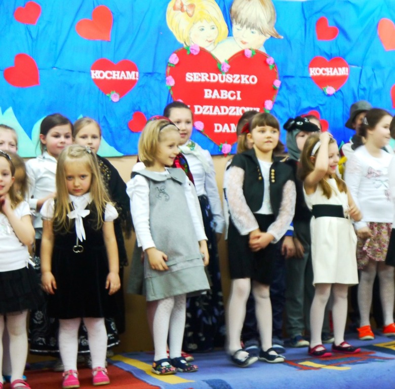 We wtorek o godzinie 12.00 w naszej szkole odbyła się uroczystość z okazji Dnia Babci i Dziadka. Pani B. Winiarczyk oraz p. A. Szabat wraz uczniami z klas I. II, III a także Oddziału Przedszkolnego, przygotowały inscenizację "W Dzień Babci i Dziadka niech muzyka zagra". Maluchy zaprezentowały licznie przybyłym gościom szereg scenek: "Kapcie", "Rozmowa z dziadkiem", "Wilk i zając", "Jak to z dziadkiem i babcią bywało", "Cztery babcie", "Babka z makutrą". Dialogi przeplatane były piosenkami przy akompaniamencie p. A. Wierzchowiaka. Mali artyści z przejęciem odtwarzali swoje role, a goście ze wzruszeniem odbierali czułe słowa kierowne pod ich adresem. Spotkanie upłynęło w miłej atmosferze, a po inscenizacji dzieci wręczyły własnoręcznie wykonane prezenty. Gościom towarzyszyły radość oraz łzy wzruszenia. Następnie wszyscy goście zostali zaproszeni na słodki poczęstunek.