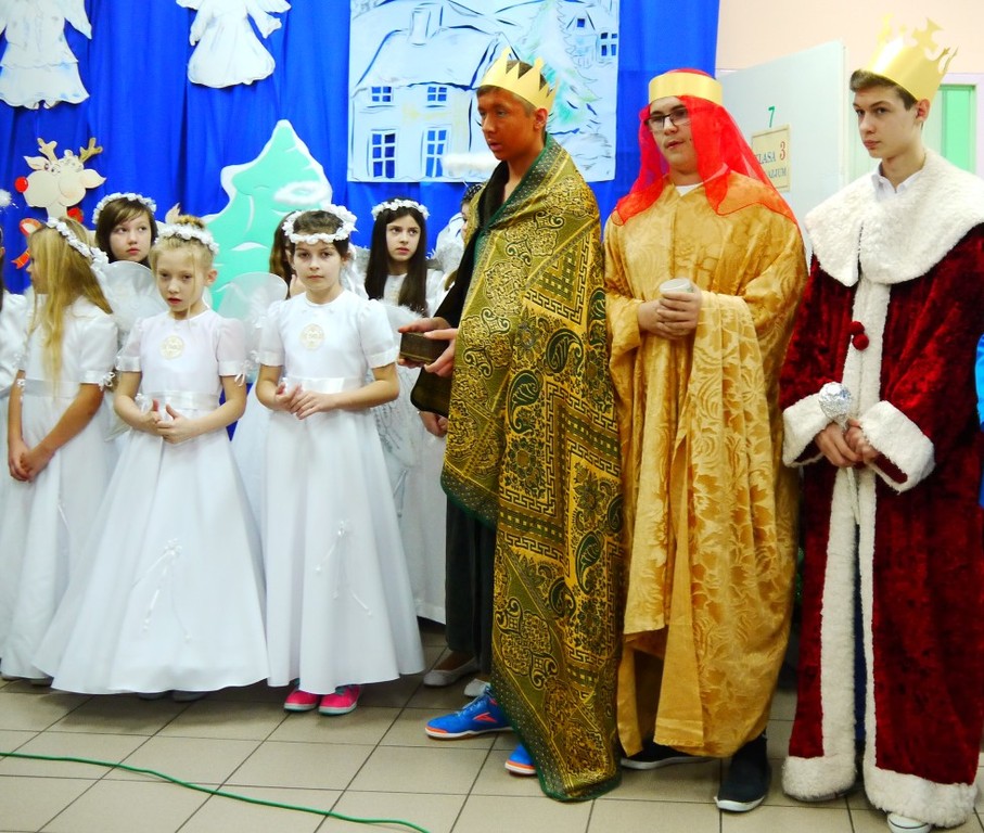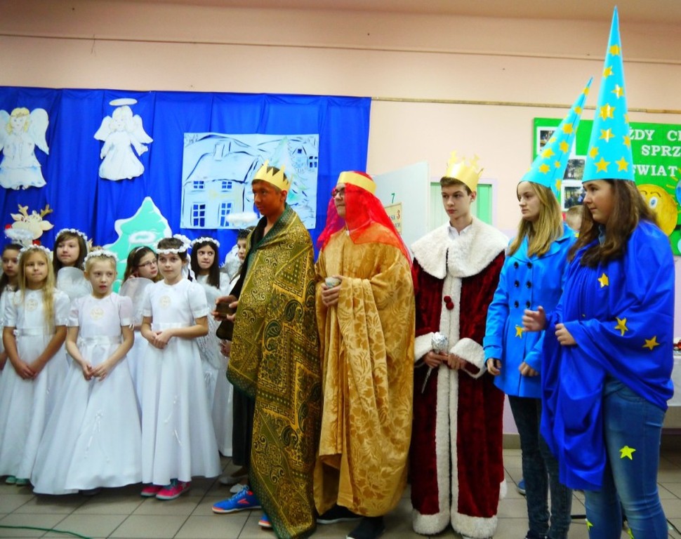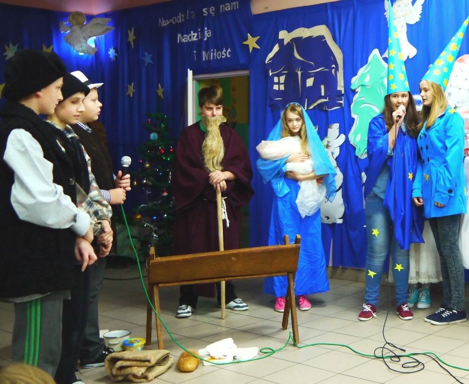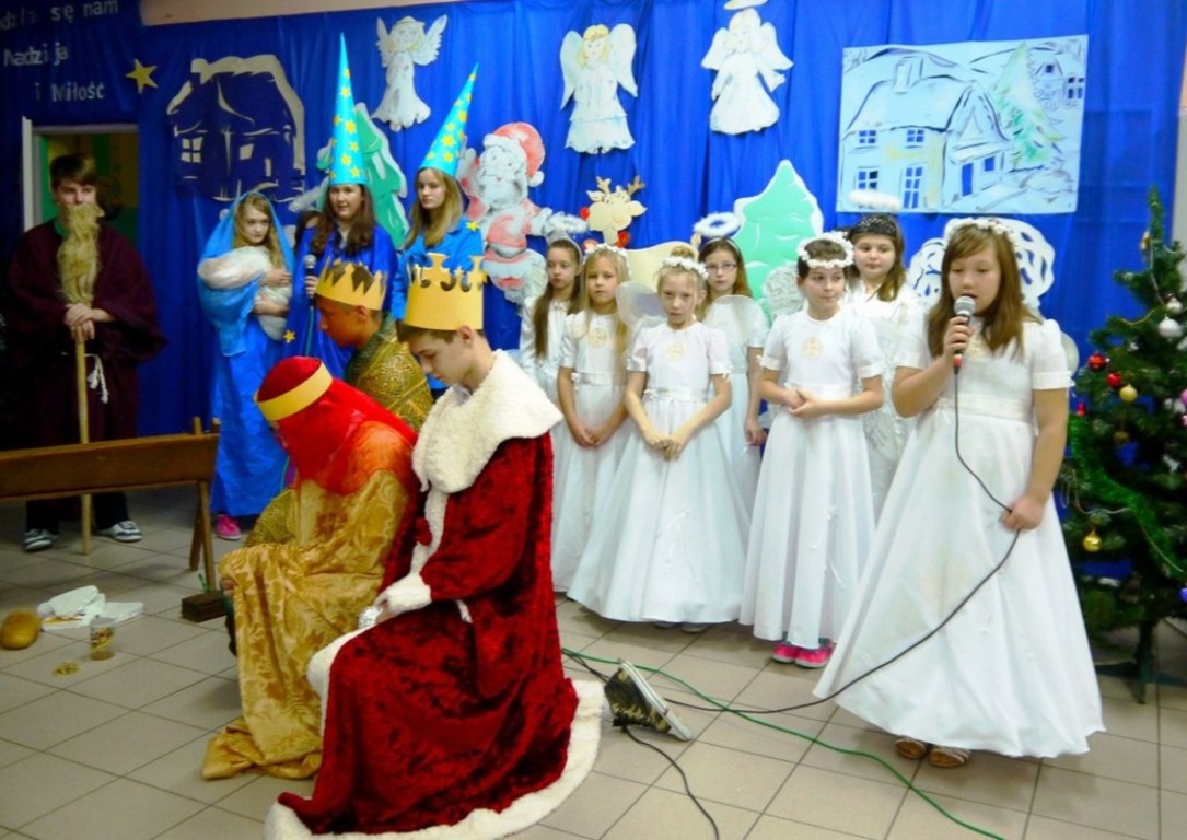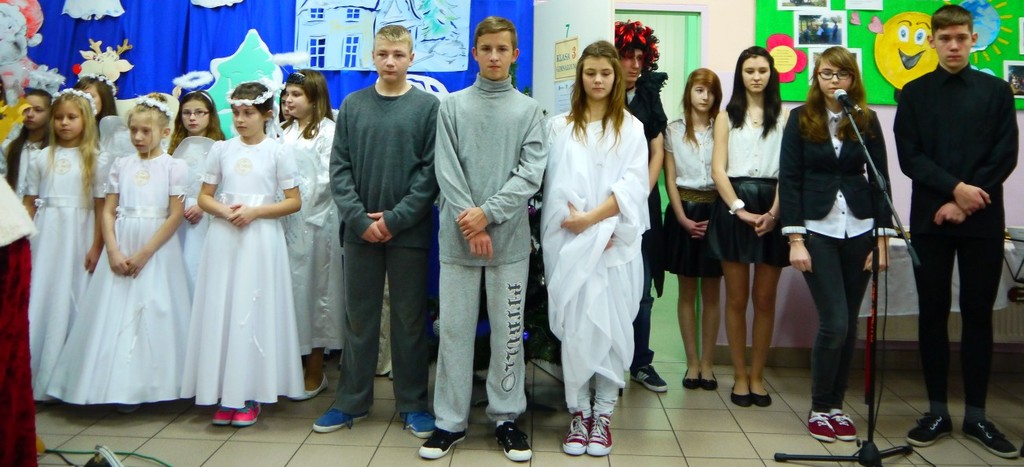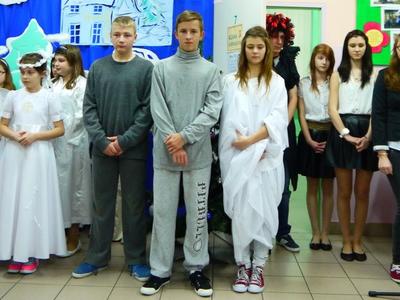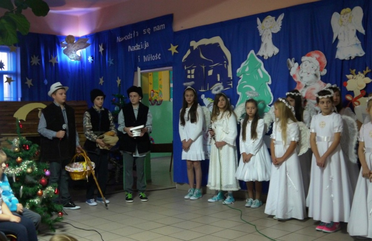 W piątek odbyły się w naszej szkole Jasełka przygotowane przez uczniów kl. IV, VI i II G. pod opieką p. Marzeny Suchory. Wszyscy po raz kolejny mogli przeżyć historię Marii i Józefa. Scenki z życia nowonarodzonego dzieciątka, pasterzy, mędrców oraz aniołów przeplatane były kolędami i pastorałkami. To wszystko wprowadziło zebranych w magiczną, świąteczną atmosferę. Przedstawienie zostało nagrodzone gromkimi brawami. Po zakończeniu odbyła się wspólna modlitwa, którą prowadził ks. W. Paluch. Potem głos zabrał dyrektor szkoły A. Białek składając zebranym najserdeczniejsze życzenia z okazji Świąt Bożego Narodzenia. Zaapelował także do uczniów aby podczas ferii świątecznych przestrzegali zasad bezpieczeństwa Po uroczystości wychowawcy wraz z uczniami udali się do klas, gdzie we własnym gronie, składając sobie życzenia połamali się opłatkiem.
