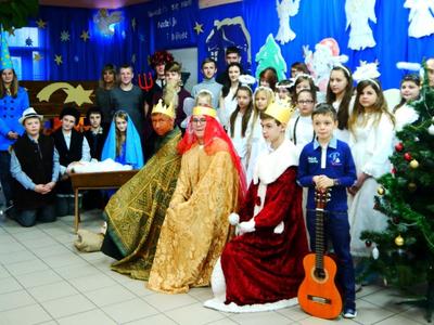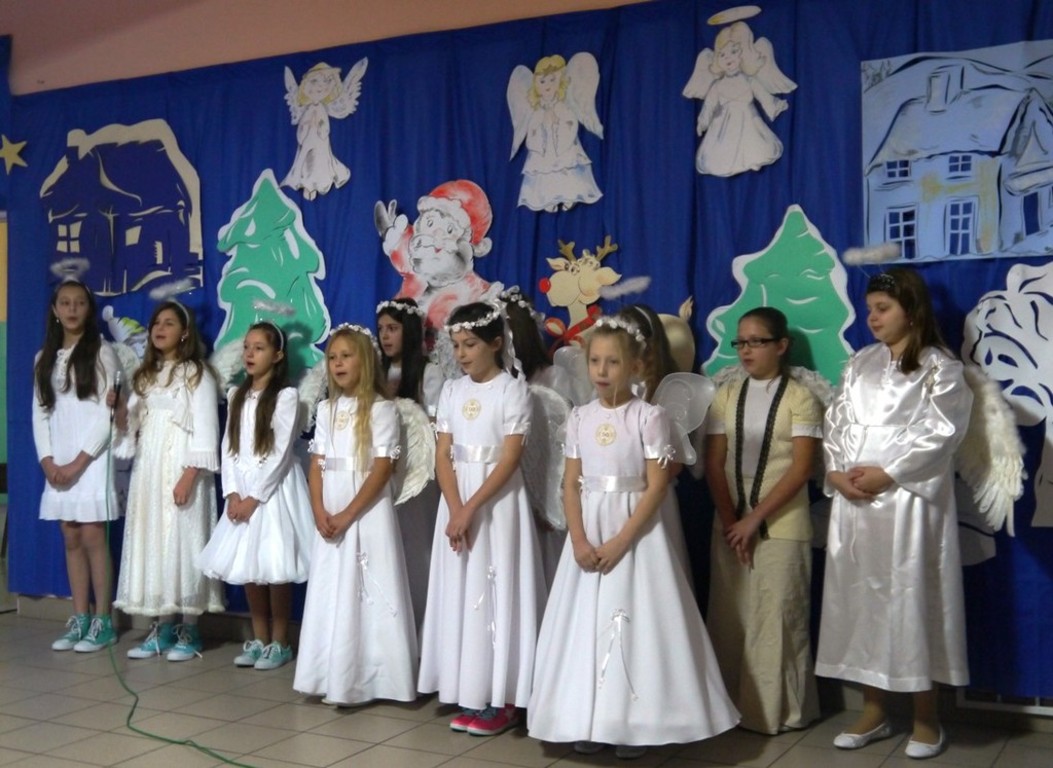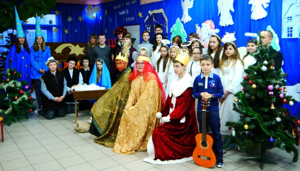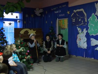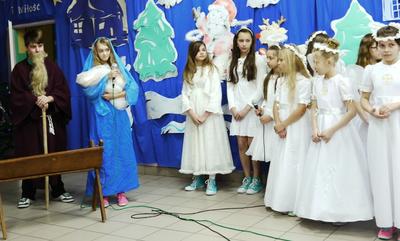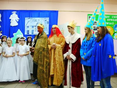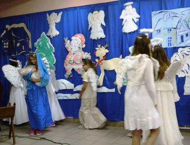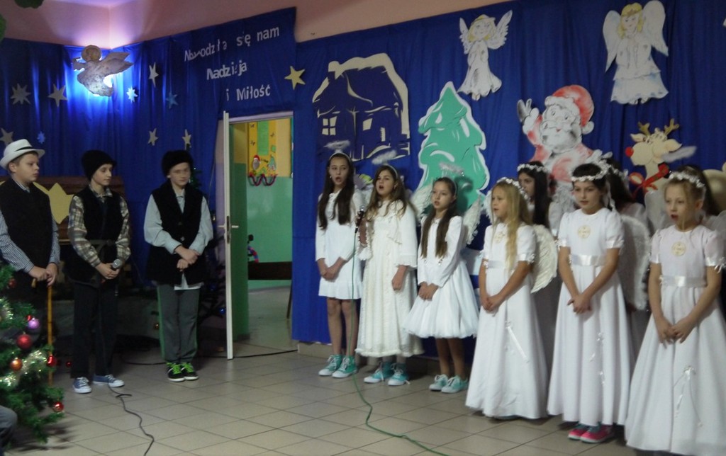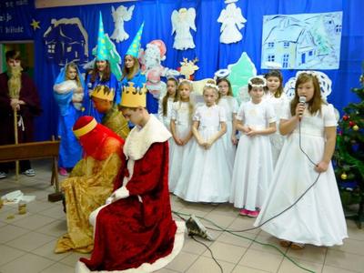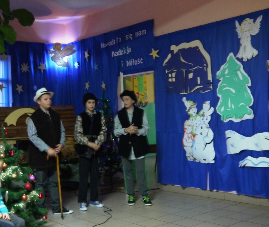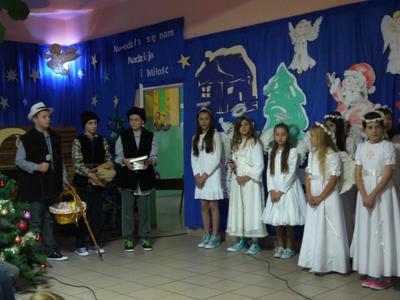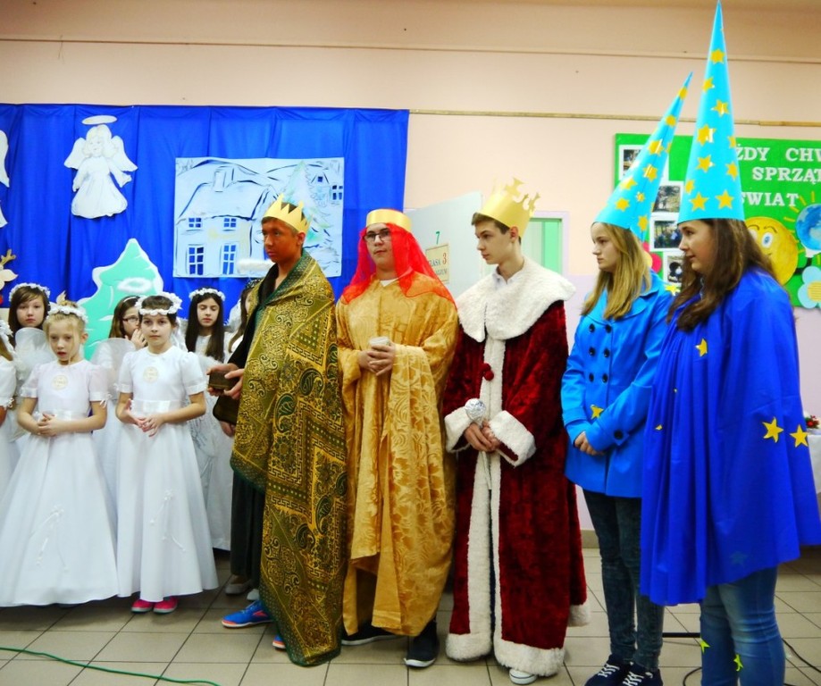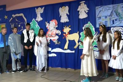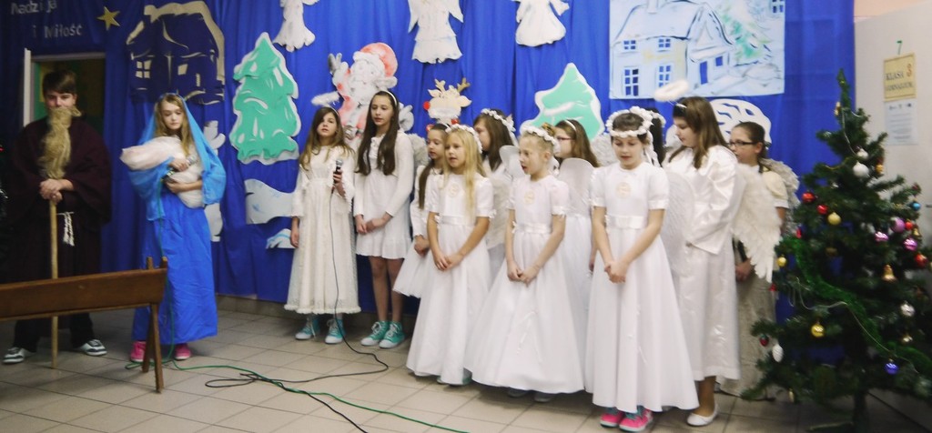 W piątek odbyły się w naszej szkole Jasełka przygotowane przez uczniów kl. IV, VI i II G. pod opieką p. Marzeny Suchory. Wszyscy po raz kolejny mogli przeżyć historię Marii i Józefa. Scenki z życia nowonarodzonego dzieciątka, pasterzy, mędrców oraz aniołów przeplatane były kolędami i pastorałkami. To wszystko wprowadziło zebranych w magiczną, świąteczną atmosferę. Przedstawienie zostało nagrodzone gromkimi brawami. Po zakończeniu odbyła się wspólna modlitwa, którą prowadził ks. W. Paluch. Potem głos zabrał dyrektor szkoły A. Białek składając zebranym najserdeczniejsze życzenia z okazji Świąt Bożego Narodzenia. Zaapelował także do uczniów aby podczas ferii świątecznych przestrzegali zasad bezpieczeństwa Po uroczystości wychowawcy wraz z uczniami udali się do klas, gdzie we własnym gronie, składając sobie życzenia połamali się opłatkiem.