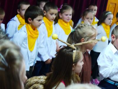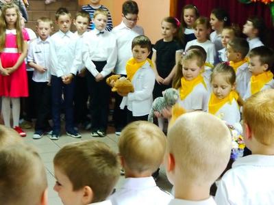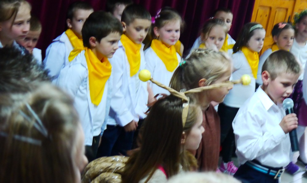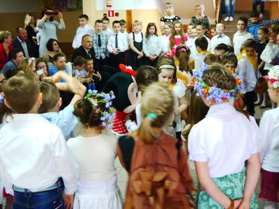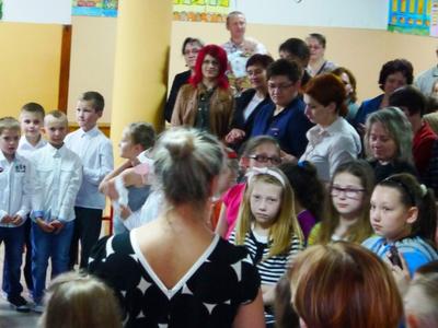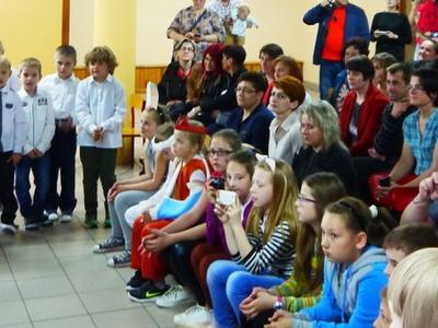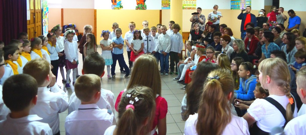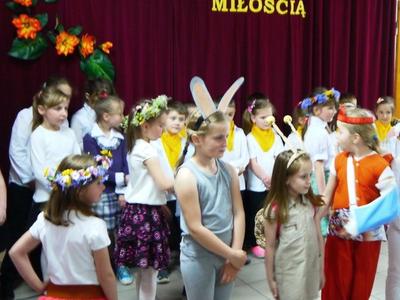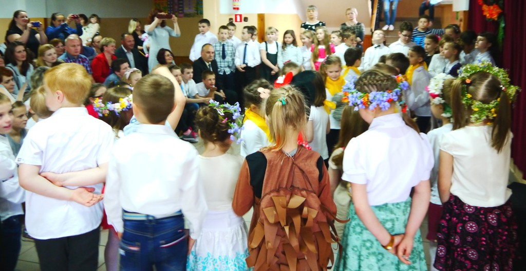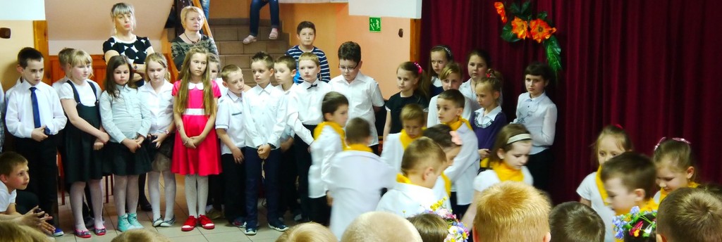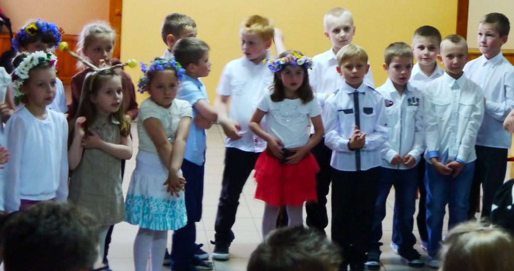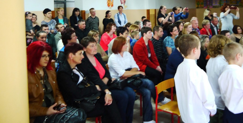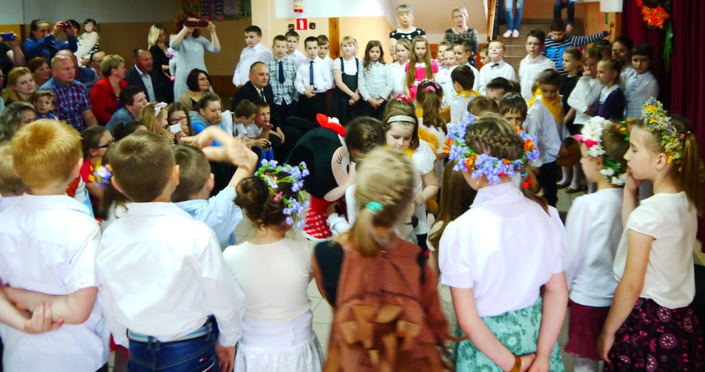 „TATA I MAMA WYPEŁNIAJĄ ŚWIAT MIŁOŚCIĄ” – takie hasło przewodnie przyświecało tegorocznej imprezie, która rozpoczęła się o 12:30. Wszystkim było bardzo miło, gdy hol szkoły zapełnił się zaproszonymi gośćmi. Inscenizację z tej okazji przygotowały: oddział przedszkolny oraz klasy I, II, III wraz z opiekunami p. A Kozik i p. B. Blajerską. Dyrektor szkoły p. A. Białek wygłosił słowo wstępu i złożył wszystkim najserdeczniejsze życzenia. Dzieci długo przygotowywały się do tej uroczystości i dzisiaj z niecierpliwością czekały aby zaprezentować się przed najbliższymi. Występ rozpoczęła klasa I, śpiewając piosenkę „Wiewióreczka mała” wraz z układem choreograficznym. Uczennica kl. II Wiktoria Kosidło wykonała utwór „Kochana mamo dla Ciebie majowe kwiaty”. Później rodzice wysłuchali recytacji wierszy. To nie koniec atrakcji przygotowanych przez dzieci. Najmłodsi zaprezentowali „Taniec z misiem”. Pokazali zgromadzonym jak dbają o swoje zabawki. Niezapomniane wrażenie wywarł układ taneczny przedszkolaków pt. „Kapelusz pełen marzeń” oraz taniec do piosenki Michela Telo „Ai Se Eu Te Pego”. Piękne życzenia, wiersze, słowa piosenek i ciekawe tańce dostarczyły zaproszonym wiele radości i wzruszeń. Po części artystycznej dzieci wręczyły swoim bliskim przygotowane własnoręcznie wykonane laurki i upominki. Uściskom i całusom nie było końca. Na zakończenie rodzice zostali zaproszeni na słodki poczęstunek.