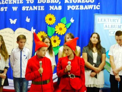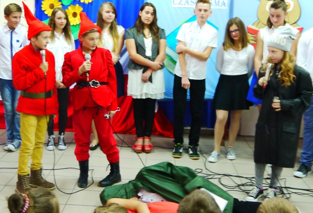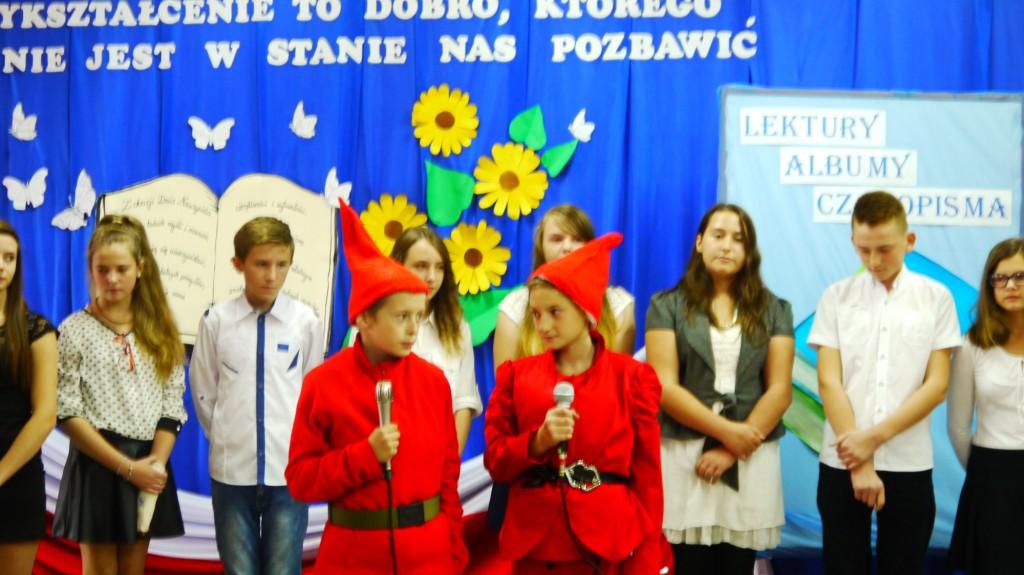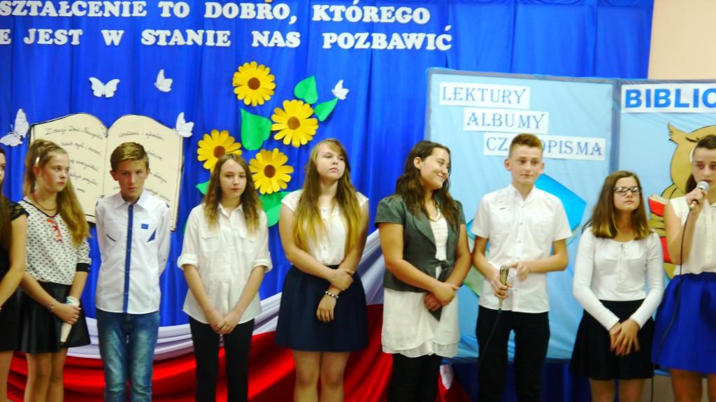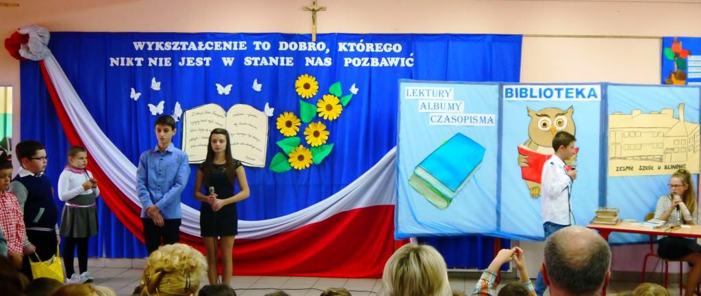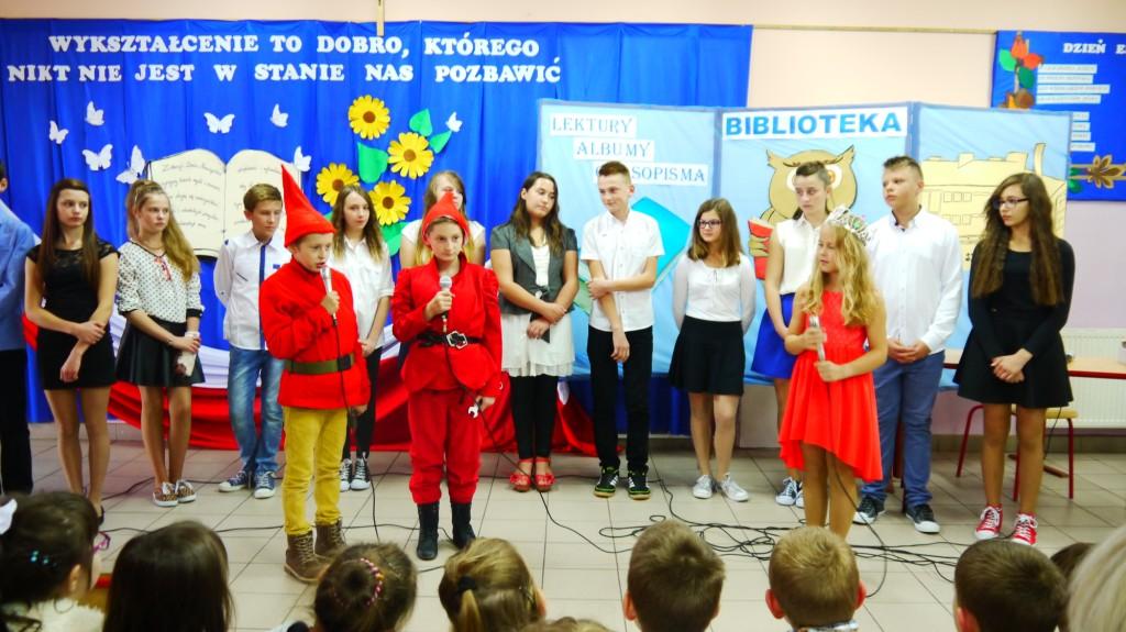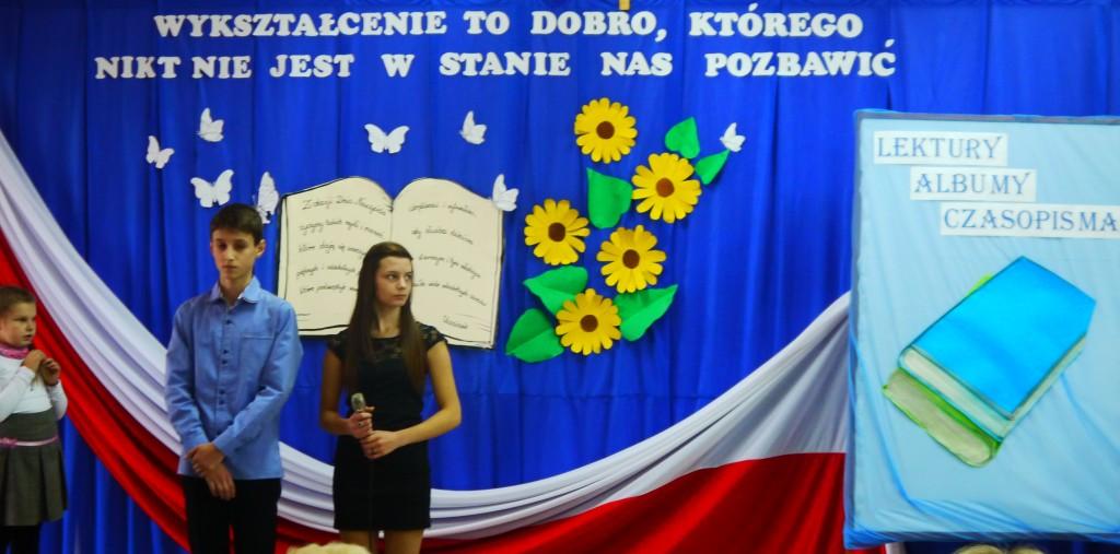 Na uroczystość przybyli Wójt Gminy Szastarka p. Artur Jaskowski oraz p. Aneta Tokarzewska – dyrektor GZOPO w Szastarce. Część artystyczną przygotowały klasy V, VI oraz I, II gimnazjum pod kierunkiem p. Urszuli Reszko oraz p. Teresy Kotuły. Uroczystość rozpoczęła się odśpiewaniem hymnu państwowego. Następnie uczniowie klasy VI odegrali pełną humoru scenkę „W bibliotece”. Potem wszyscy obejrzeli zjazd absolwentów szkoły, który przeniósł nas w 2025 rok. W następnej części przedstawienia uczniowie podziękowali nauczycielom za ich trud włożony w nauczanie i wychowanie przyszłych pokoleń. Życzenia otrzymali również pracownicy szkoły. Gromkie brawa świadczyły o tym, że przedstawienie wszystkim bardzo się podobało. Pan dyrektor podziękował uczniom i nauczycielom za przygotowaną część artystyczną. Zaznaczył, że dzisiejsze święto to święto wszystkich, także uczniów, bez których nauczanie nie byłoby możliwe. Spotkanie to było okazją do wręczenia nagród nauczycielom i pracownikom szkoły. Następnie głos zabrał Wójt Gminy p. Artur Jaskowski. Wręczył nagrodę dyrektorowi szkoły p. Andrzejowi Białkowi. Wszystkim nauczycielom i pracownikom życzył wielu sukcesów w życiu osobistym i zawodowym. Miłym akcentem na zakończenie był uścisk dłoni i kwiaty.