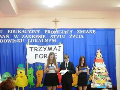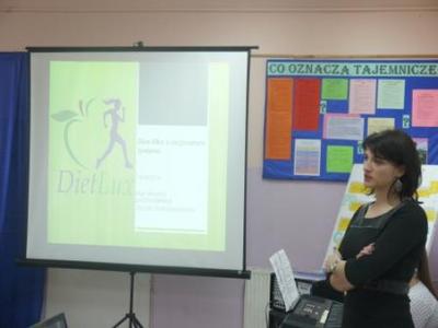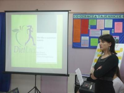Koordynatorkami odpowiedzialnymi za razlizacje projektu w naszej szkole są panie: Urszula Reszko i Teresa Kotuła. W ramach realizacji projektu została zaproszona do naszej szkoły pani dietetyk - mgr Dorota Pietraszek- Bańka, która wygłosiła prelekcje na temat zdrowego, zbilansowanego odżywiania. Spotkanie z panią dietetyk było także częścią realizacji projektu edukacyjnego realizoawnego przez klasę II gimnazjum PROMUJĄCEGO ZMIANĘ ZACHOWAŃ W ZAKRESIE STYLU ŻYCIA W ŚRODOWISKU LOKALNYM .