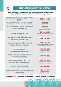 Szanowni Rodzice, Drodzy Uczniowie, uprzejmie informujemy, że ogólnopolska infolinia dla dzieci i młodzieży oraz ich opiekunów POMAGAMY (800 800 605) od 1 listopada br. zastąpiona będzie telefonem zaufania Rzecznika Praw Dziecka. Nowy bezpłatny numer, pod którym dzieci i młodzież...