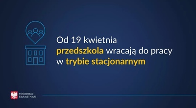 Od 19 kwietnia 2021 roku Oddziały przedszkole wracają do nauki stacjonarnej.