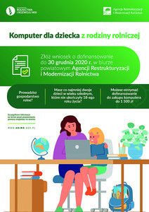 Do 30 grudnia 2020 r. można składać wnioski o przyznanie pomocy na dofinansowanie kosztów zakupu komputera stacjonarnego lub przenośnego (laptopa) wraz z niezbędnym oprogramowaniem oraz myszą, klawiaturą i ładowarką. Wysokość pomocy wynosi 1500 zł na rodzinę. Pomoc będzie przysługiwała...