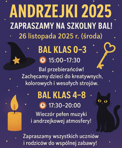 Drodzy Uczniowie, Szanowni Rodzice!Serdecznie zapraszamy na bal andrzejkowy,