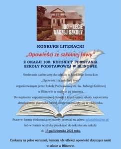 Serdecznie zachęcamy do udziału w konkursie literackim „Opowieści ze szkolnej ławy” organizowa