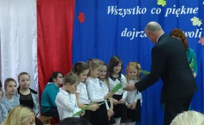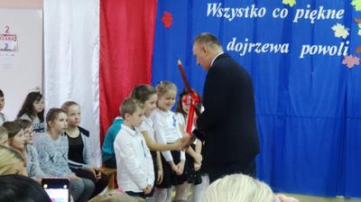 Podczas części artystycznej dzieci z pierwszej klasy swoimi występami potwierdziły chęć przyjęcia do grona społeczności szkolnej i radość z tego faktu. Następnie w obecności Pana Wójta Gminy Szastarka Artura Jaskowskiego, nauczycieli, uczniów naszej szkoły oraz rodziców pierwszoklasiści złożyli uroczyste ślubowanie i zostali pasowani na uczniów przez Dyrektora Szkoły Andrzeja Białka. Na pamiątkę tego wydarzenia wszystkie dzieci dostały piękne dyplomy, upominki od Pana Wójta, uczniów klasy III oraz rodziców. Wykonano klasowe zdjęcia, a potem był słodki poczęstunek dla pierwszaków i gości.