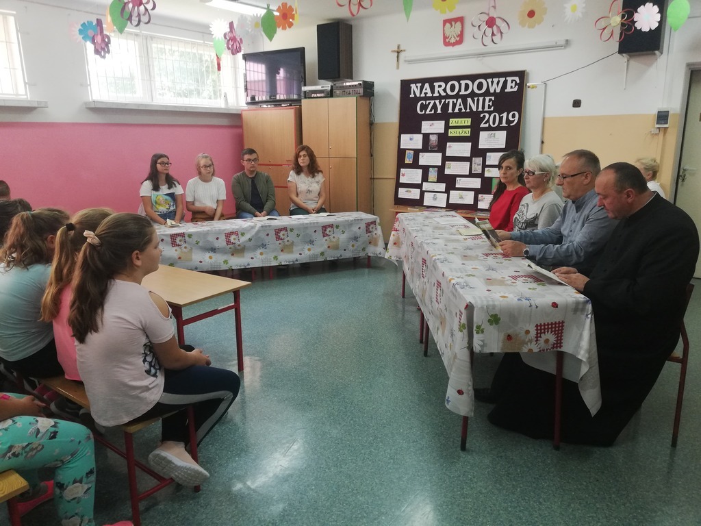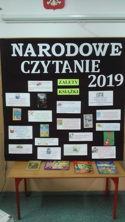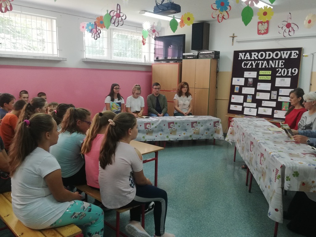 Akcja ,,Narodowe Czytanie” popularyzuje czytelnictwo, niezmiennie udowadnia, że piękno polskiej literatury ma moc, aby nas jednoczyć i zespalać wokół wspólnych celów i wspólnych wartości. Ta akcja odbywa się każdego roku w naszej szkole.
