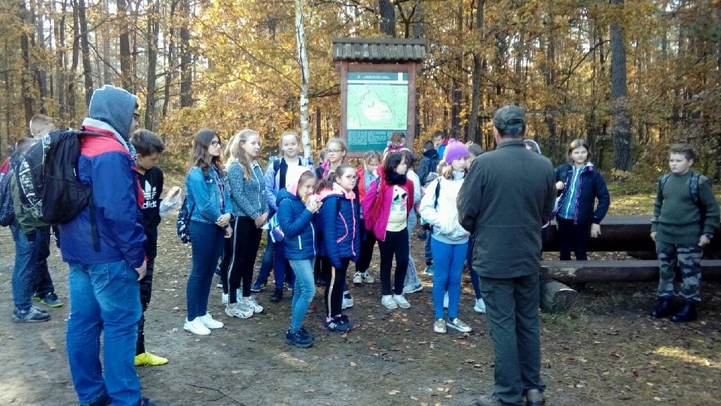 Dnia 18 października 2019 roku odbyła się wycieczka do rezerwatu przyrody ,, Imielty Ług”, a także do oczyszczalni ścieków w Modliborzycach . Uczniowie naszej szkoły piękny słoneczny dzień spędzili aktywnie na świeżym powietrzu podziwiając piękno przyrody. W skład rezerwatu wchodzą bagna, stawy leśne i lasy. Położony on jest na terenie Parku Krajobrazowego Lasy Janowskie w obrębie leśnictw Łążek, Gwizdów i Kochany, a jego łączna powierzchnia wynosi 802 ha. Ta niecodzienna nazwa rezerwatu pochodzi prawdopodobnie z okresu rozbiorów Polski i w tłumaczeniu z rosyjskiego oznacza „rozległe bagno”. Obecnie jest on przedzielony groblą tworząc dwa zbiorniki o nazwach Imielty Ług i Radełko. Głównym celem ochrony na tym terenie jest zachowanie charakterystycznych dla Puszczy Solskiej obszarów rozległych bagien, zarastających zbiorników wodnych z rzadką, chronioną roślinnością i ostoją ptactwa wodnego. My przeszliśmy środkiem rezerwatu idąc wspomnianą wcześniej groblą. Widoki, które zobaczyliśmy były piękne. Na zakończenie wycieczki zorganizowano ognisko.