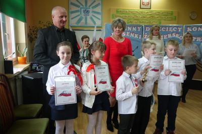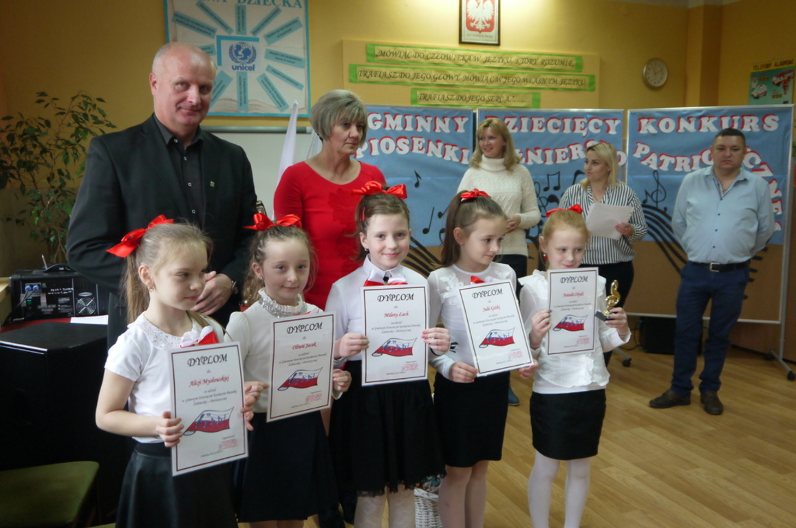 Uczniowie klasy III wystąpili w następującym składzie: Mikołaj Krawczyk, Julia Kiszka, Sandra Obydź, Bartłomiej Obydź i Radosław Wcisło. Dzieci piosenką ,,Niepokorna Niepodległa” także zdobyli trzecie miejsce w kategorii klas trzecich. Pamiątkowe dyplomy, statuetki wręczył zwycięskim zespołom Wójt Gminy Szastarka Artur Jaskowski. Gratulujemy wszystkim dzieciom i dziękujemy organizatorom z miłą atmosferę.