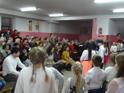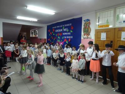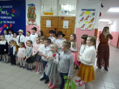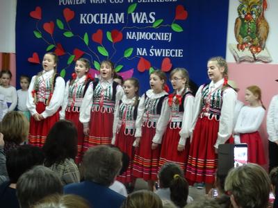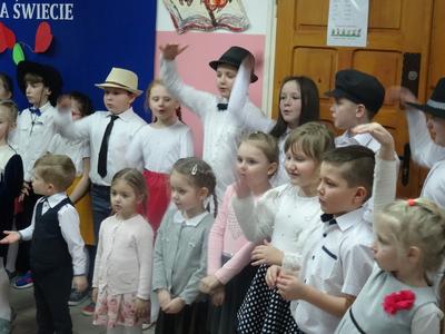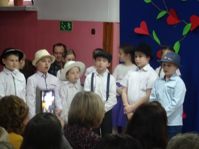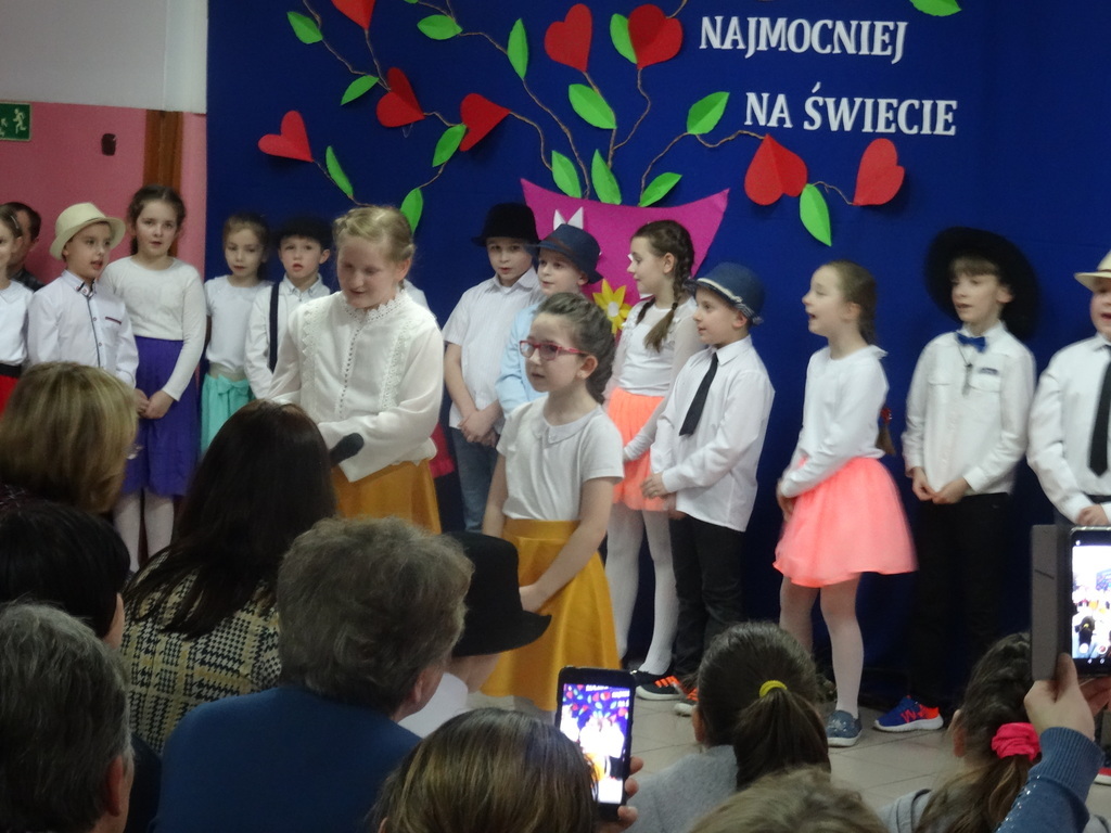 Dnia 10 lutego w naszej szkole obchodziliśmy Dzień Babci i Dziadka. To właśnie dla wszystkich babć i dziadków przedszkolaki i uczniowie klas I-III przygotowały spektakl, w którym Dziadkowie przenieśli się w słowno-muzyczną podróż do przeszłości. Podczas przedstawienia w pełnych humoru wierszach i piosenkach świętujący mogli doszukać się różnych sytuacji i historii z własnego życia od wczesnej młodości po dzień dzisiejszy. Dodatkową atrakcją dla Dziadków było wysłuchanie ludowych piosenek w wykonaniu zespołu „Blinowianeczki”, którego członkiniami są uczennice VI klasy naszej szkoły.