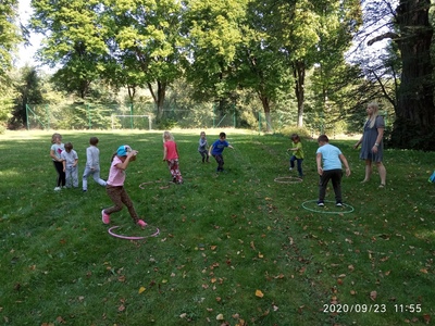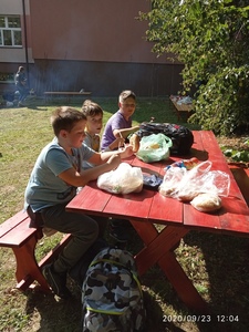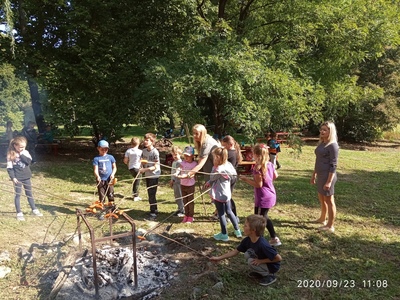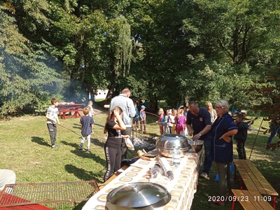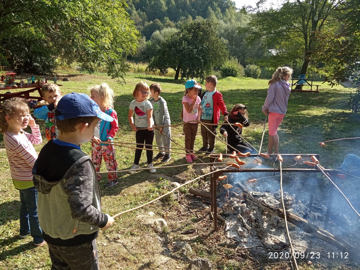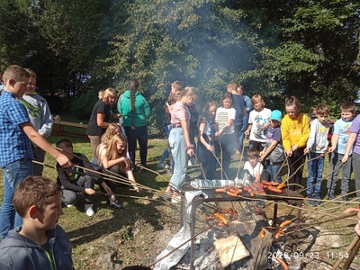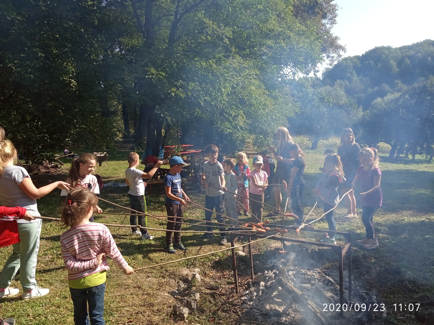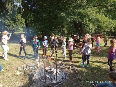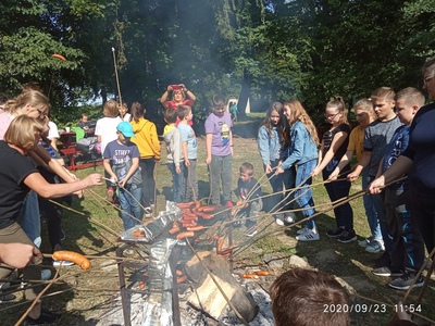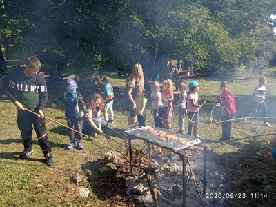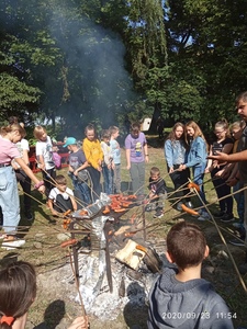 W dniu 23 września 2020r. w naszej szkole uczniowie świętowali zakończenie prac związanych z wykopkami ziemniaków. Zgodnie ze starą tradycją należało upiec nowo zebrane ziemniaki w ognisku. Tak tez stało się. Uczniowie wszystkich klas uczestniczyły w ceremonii pieczenia ziemniaków i kiełbasek. Najpierw zaczęli najmłodsi od przedszkolaków do klas I-III, a potem IV – VIII. Choć gorąco od ognia i pięknej pogody wszystkim pieczone ziemniaki i kiełbaski bardzo smakowały. W międzyczasie na boisku odbywały się różne zabawy i gry też z ziemniakami. Wszyscy rozjechali się do domu opaleni ogniem, dymem i słońcem.