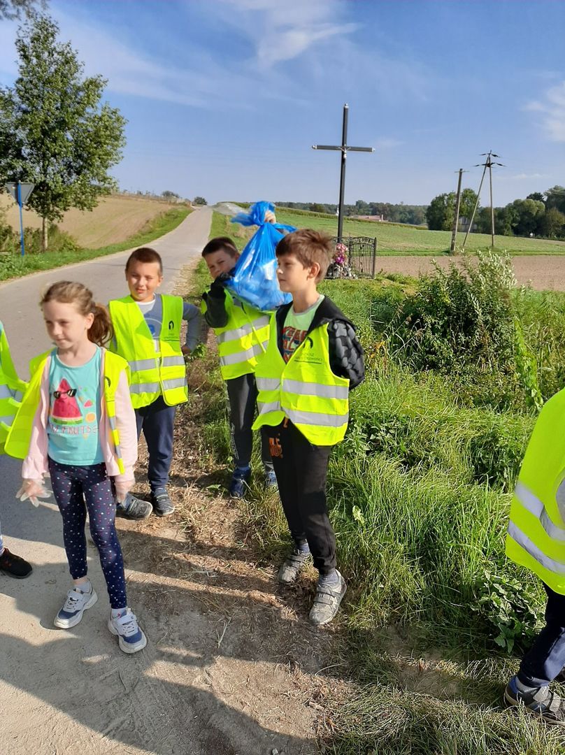 Każda klasa łącznie z przedszkolakami miała swój rewir. Zebraliśmy tylko 10 worków śmieci, co może oznaczać, że wzrosła świadomość społeczeństwa i mniej śmiecimy. Bardzo nas to cieszy! Ilość zbieranych śmieci zmniejsza się z każdym rokiem. Jesteśmy przekonani, że to my swoją proekologiczną postawą wpływamy na zmianę nawyków i przyzwyczajeń lokalnej społeczności. Sprzątamy, bo wierzymy, że to ma sens.