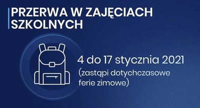 Następnie bezpośrednio po tym terminie odbędzie się przerwa w zajęciach szkolnych od 4 do 17 stycznia 2021, która zastąpi dotychczasowe ferie.