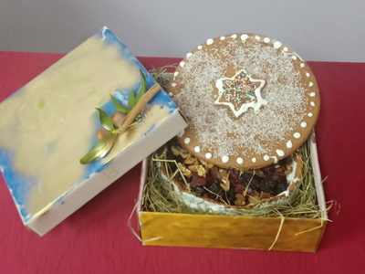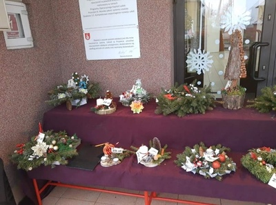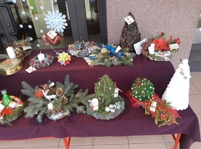 Pomysły i materiały, z których te ozdoby zostały zrobione były bardzo oryginalne i zaskakujące. Dominowały materiały naturalne: drewno, mech, szyszki, kora, orzechy, pachnąca kawa, a nawet pierniki z lukrem imitującym śnieg. Przy cichym dźwięku kolęd, zwiastujących zbliżające się święta, galeria prezentowała się wspaniale. Wszystkie ozdoby zostały sprzedane, a fundusze w kwocie 770 zł zasiliły konto Rady Rodziców.