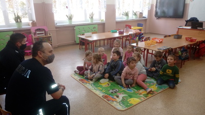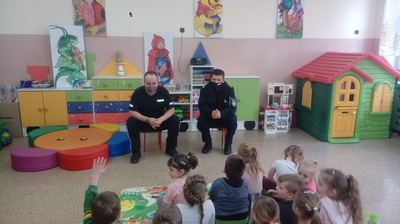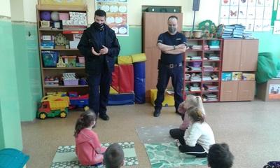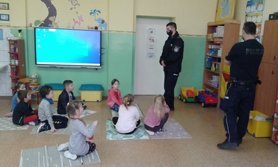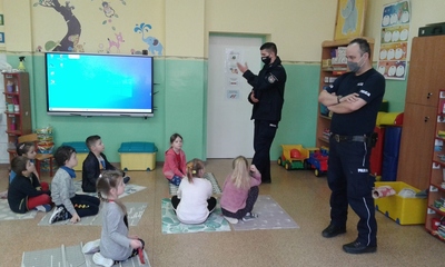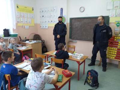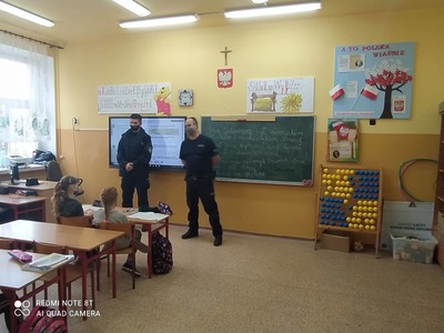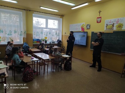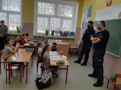 W dniu 9 marca 2021 roku naszą szkołę odwiedzili aspirant sztabowy Hubert Herzog i sierżant sztabowy Sebastian Janicki z Komendy Powiatowej w Kraśniku. Spotkali się z uczniami z klas 0-3.