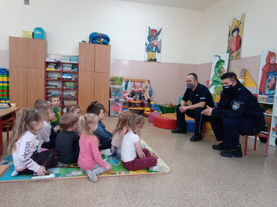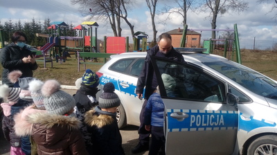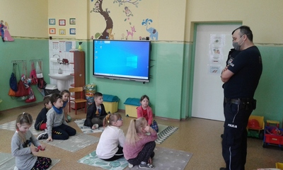 Dzieci były zadowolone z możliwości spotkania z policjantami i zadawały im sporo pytań dotyczących różnych aspektów pracy w policji.