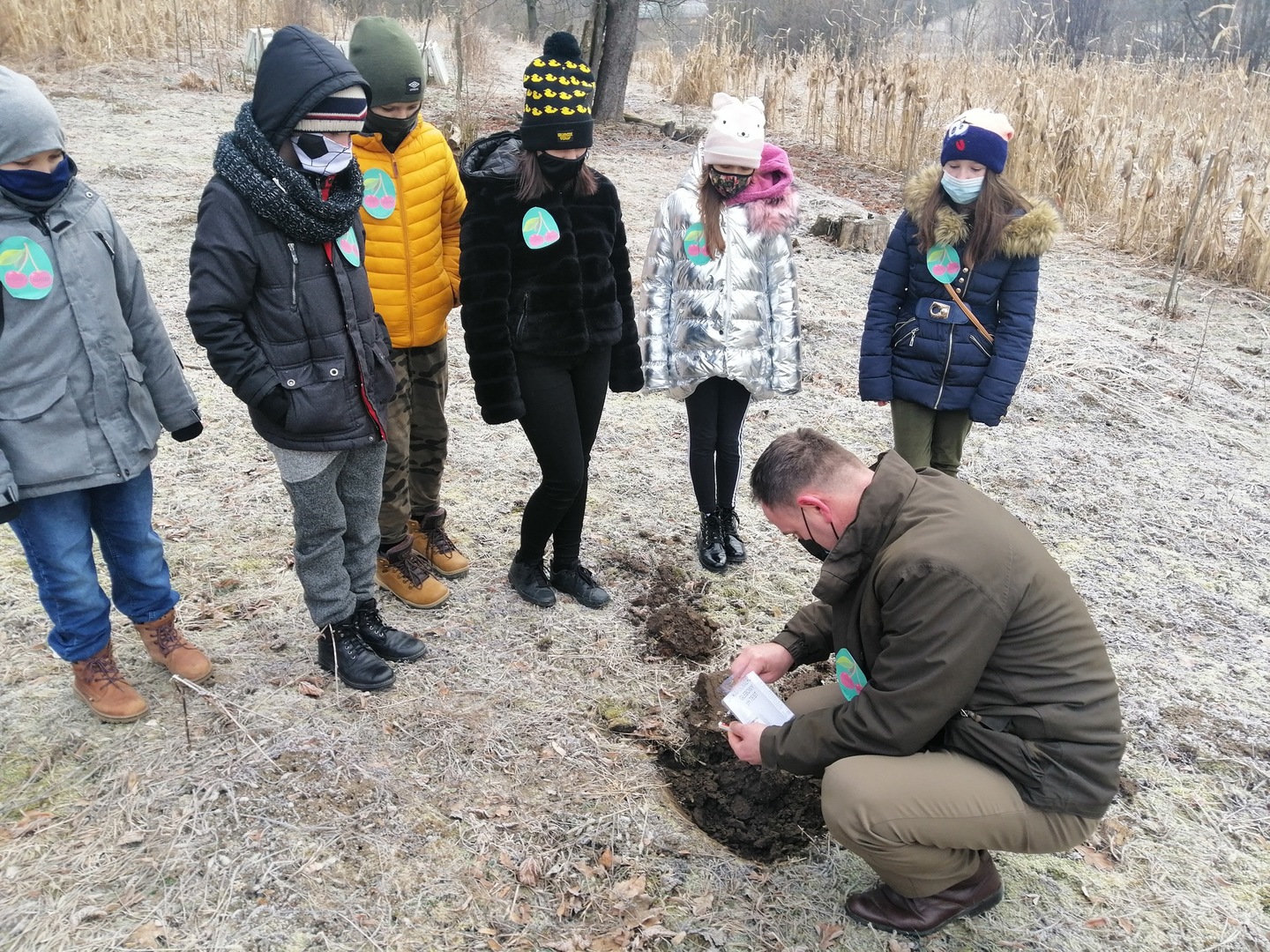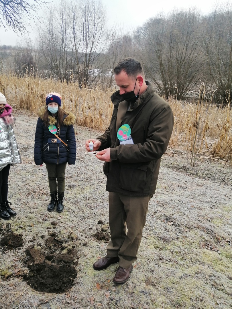 Podczas spotkania Pan Michał Kosikowski pomógł wybrać odpowiednie miejsce na założenie szkolnego sadu. Wytłumaczył uczniom znaczenie warunków klimatycznych i glebowych w uprawie drzew owocowych oraz przeprowadził badanie kwaskowatości gleby w wyznaczonym miejscu. Opowiedział również o sposobie sadzenia drzew, naturalnych metodach nawożenia gleby i znaczeniu roślin rosnących w sąsiedztwie sadu. Chętnie udzielał odpowiedzi na pytania uczniów i zadeklarował pomoc w rozwijaniu wiedzy na temat naturalnej uprawy drzew.
