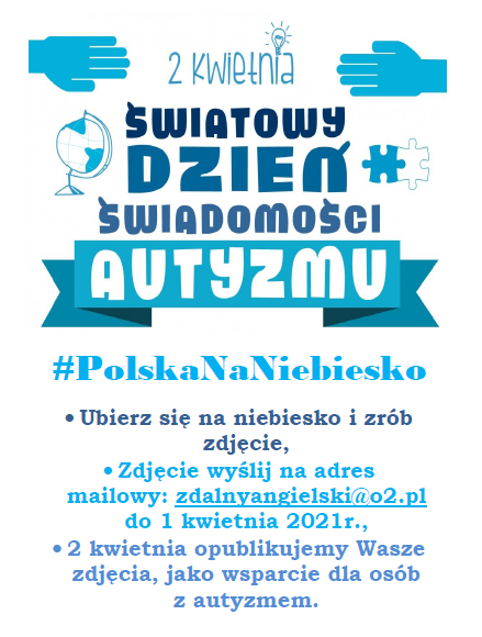 Wszystkich Uczniów, Rodziców i Nauczycieli zachęcamy do włączenia się do kampanii #PolskaNaNiebiesko