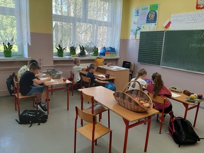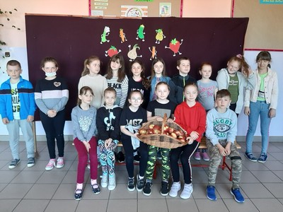 Wychowawczynie przeprowadziły w klasach zajęcia podczas których uczniowie rozwiązywali zagadki, krzyżówki, quiz o warzywach, sprawdzali swoją spostrzegawczość znajdując różnice między ilustracjami. „Owocowo – warzywne” zajęcia bardzo się wszystkim spodobały. Za aktywne uczestnictwo dzieci otrzymały drobne upominki. Podsumowaniem dnia zajęć była degustacja różnych odmian jabłek.