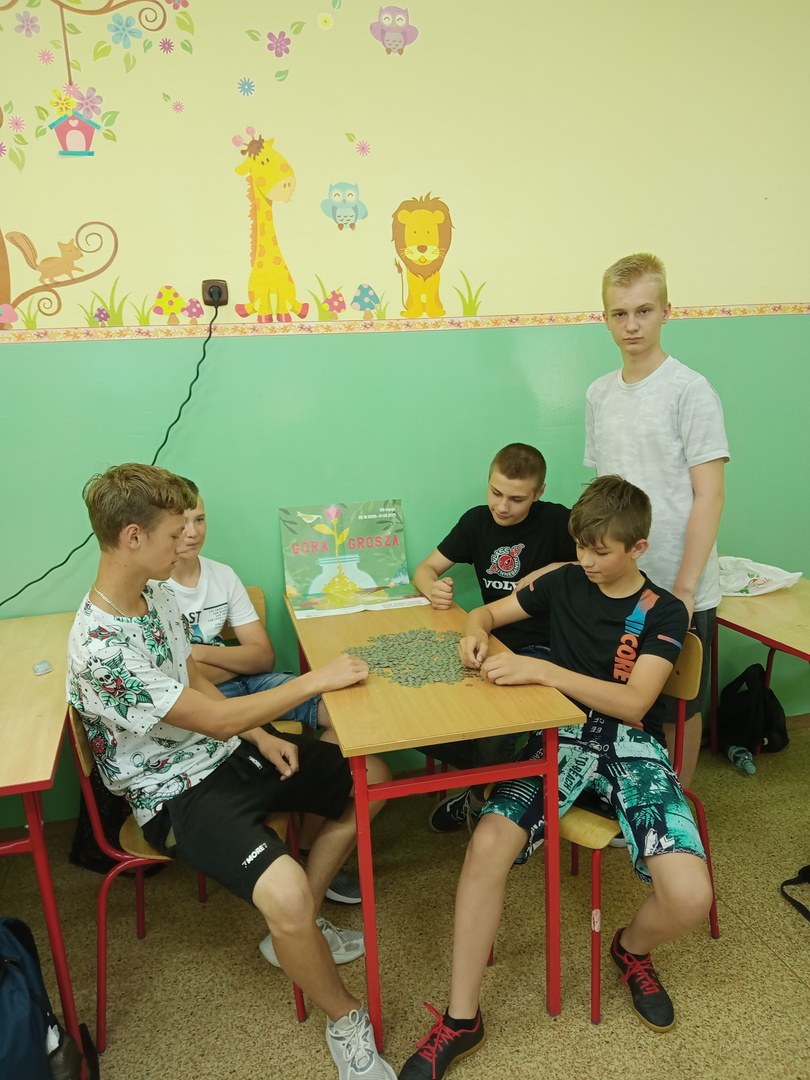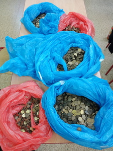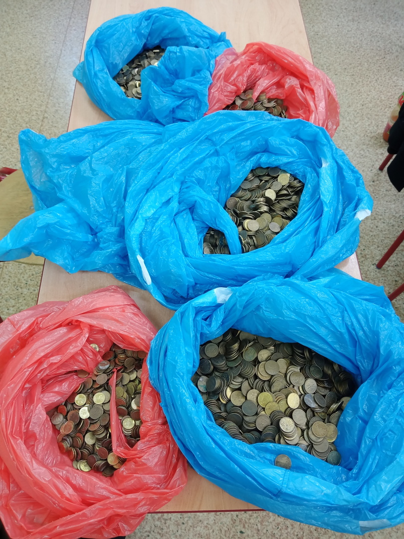 Pieniądze zostały posegregowane, policzone i zważone oraz umieszczone w woreczkach. Uszykowano 2 paczki, które pojedynczo nie mogły ważyć więcej niż 10 kg. Paczki zawieziono na pocztę i wysłano do fundacji Nasz Dom.