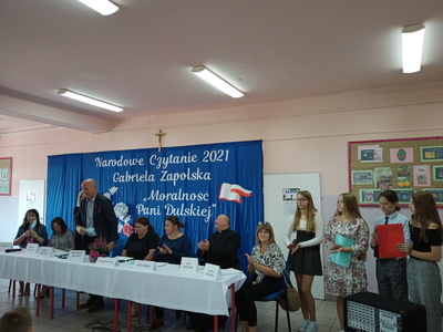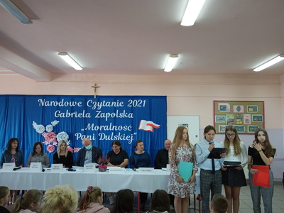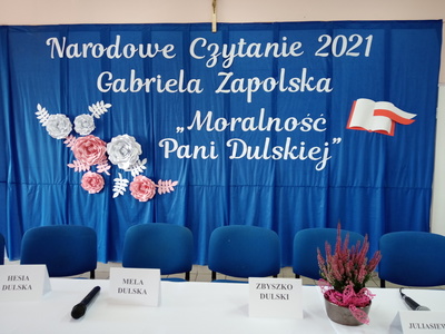 Nasza szkoła po raz kolejny wzięła udział w organizowanej przez Prezydenta RP ogólnopolskiej akcji propagującej znajomość literatury narodowej – Narodowe Czytanie 2021.Para Prezydencka, na lekturę jubileuszowej 10 edycji Narodowego Czytania zaproponowała „Moralność pani Dulskiej” Gabrieli Zapolskiej. Dramat ten jest uważany za jedno z najważniejszych osiągnięć twórczych pisarki, powstał jesienią 1906 roku i bardzo szybko stał się popularny. Utwór cechuje komizm, bogactwo obserwacji obyczajowych, a zwłaszcza silna wymowa społeczna. Prapremiera sztuki odbyła się 15 grudnia 1906 roku w Teatrze Miejskim w Krakowie. Kilka tygodni później wystawiono ją w Warszawie, a następnie we Lwowie. Sztuka Gabrieli Zapolskiej doczekała się wielu inscenizacji teatralnych i kilku adaptacji filmowych, co świadczy o ponadczasowości treści i problemów w niej poruszanych. Dnia 7 września nasza szkoła zorganizowała akcję Narodowe Czytanie 2021.