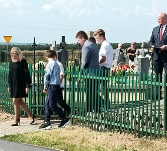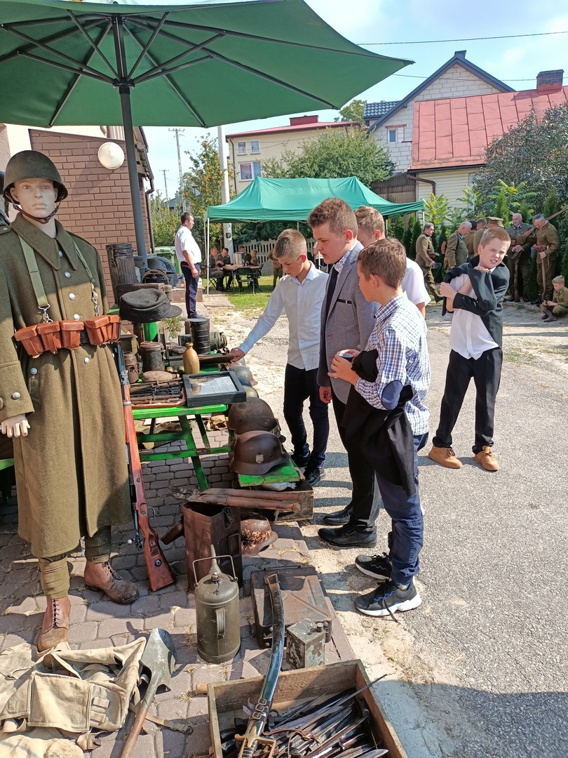 Po liturgii, wszyscy zgromadzeni: przedstawiciele władz gminy na czele z Panem Wójtem Arturem Jaskowskim, społeczność szkolna i lokalna oraz strażacy, w asyście Grupy Rekonstrukcyjno- Historycznej z Majdanu Obleszcze, udali się na cmentarz, gdzie został odczytany Apel Poległych. Następnie przybyłe delegacje dokonały uroczystego złożenia wieńców przed pomnikiem żołnierzy poległych we wrześniu 1939 roku.