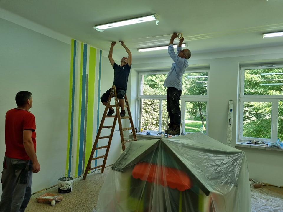 Trochę żal, że wakacje się skończyły. Pora jednak wracać do obowiązków. Warto więc zatroszczyć się, aby powrót był przyjemnością. Niewątpliwie tak się stało w grupie sześciolatków, na których, dzięki operatywności naszej Pani Dyrektor oraz zaangażowaniu Władz Gminy, czekała zupełnie odmieniona sala. Dla niektórych bowiem wakacje to czas wytężonej pracy, za którą SERDECZNIE DZIĘKUJEMY.