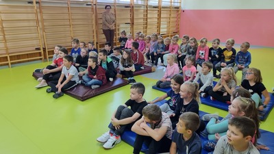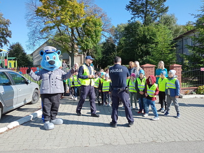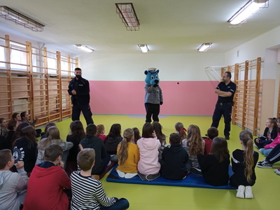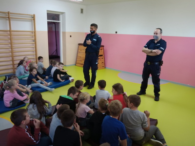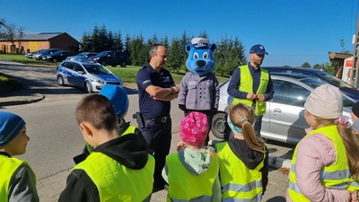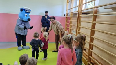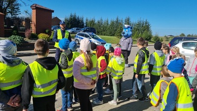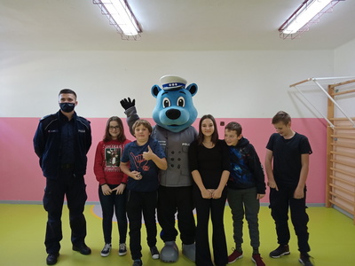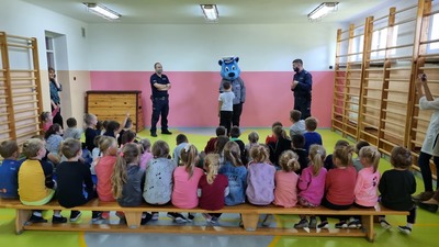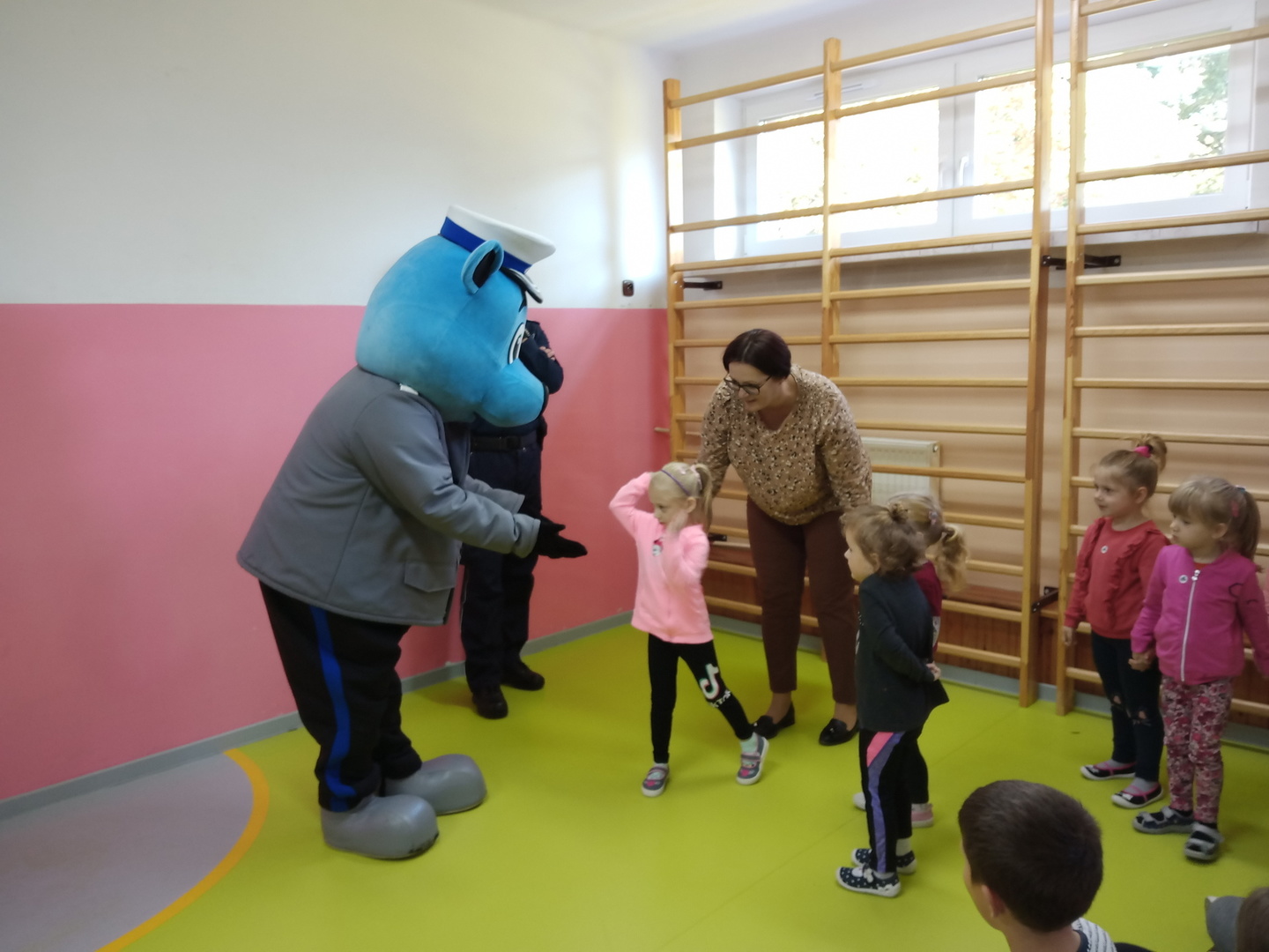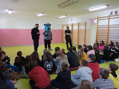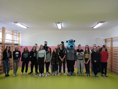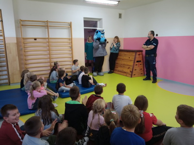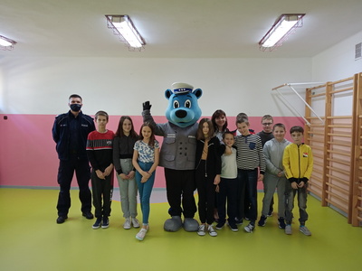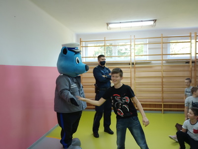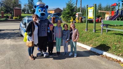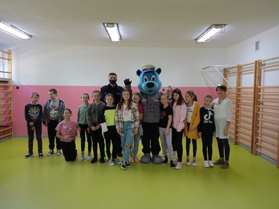 28 września 2021 w naszej szkole pojawili się niecodzienni goście. Byli to panowie policjanci z Powiatowej Komendy Policji w Kraśniku, którym towarzyszyła maskotka, przyjaciel dzieci „Inspektor Kraśniczek”.