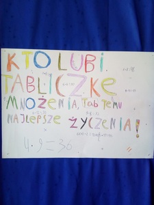 - Praca Wojciecha Tylusa z klasy VII, za hasło „Kto lubi tabliczkę mnożenia, temu najlepsze życzenia”