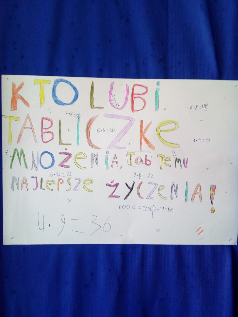 01.10.2021r. z okazji XI Światowego Dnia Tabliczki Mnożenia odbył się konkurs na plakat promujący tabliczkę mnożenia. Wyróżnione prace to: