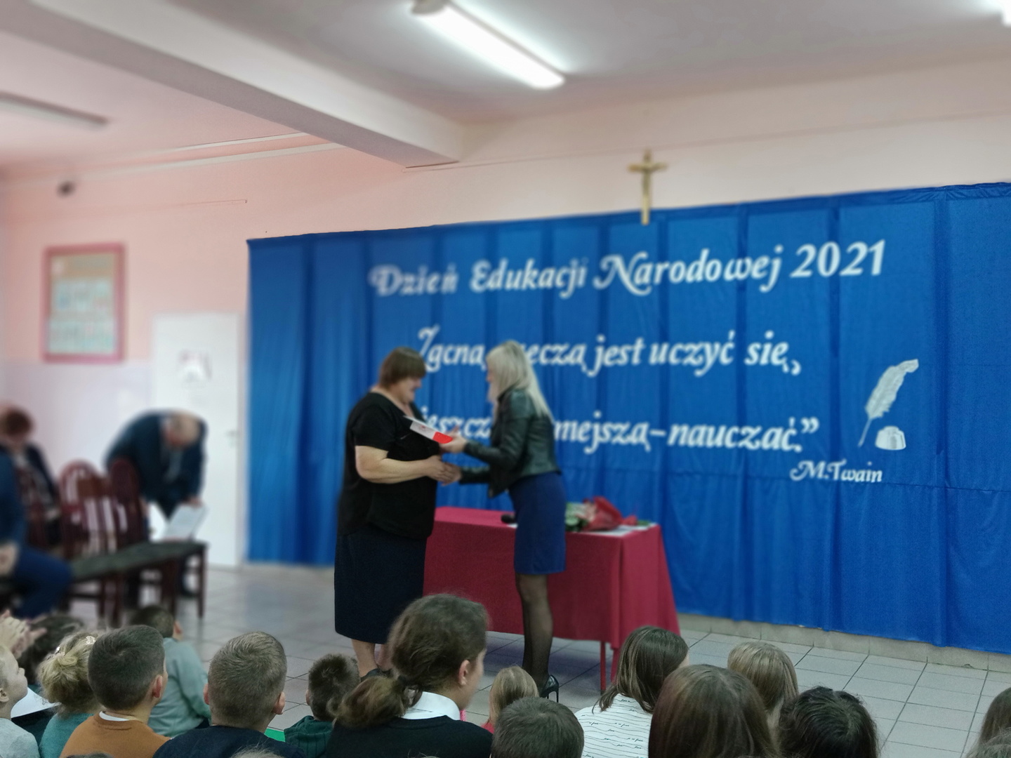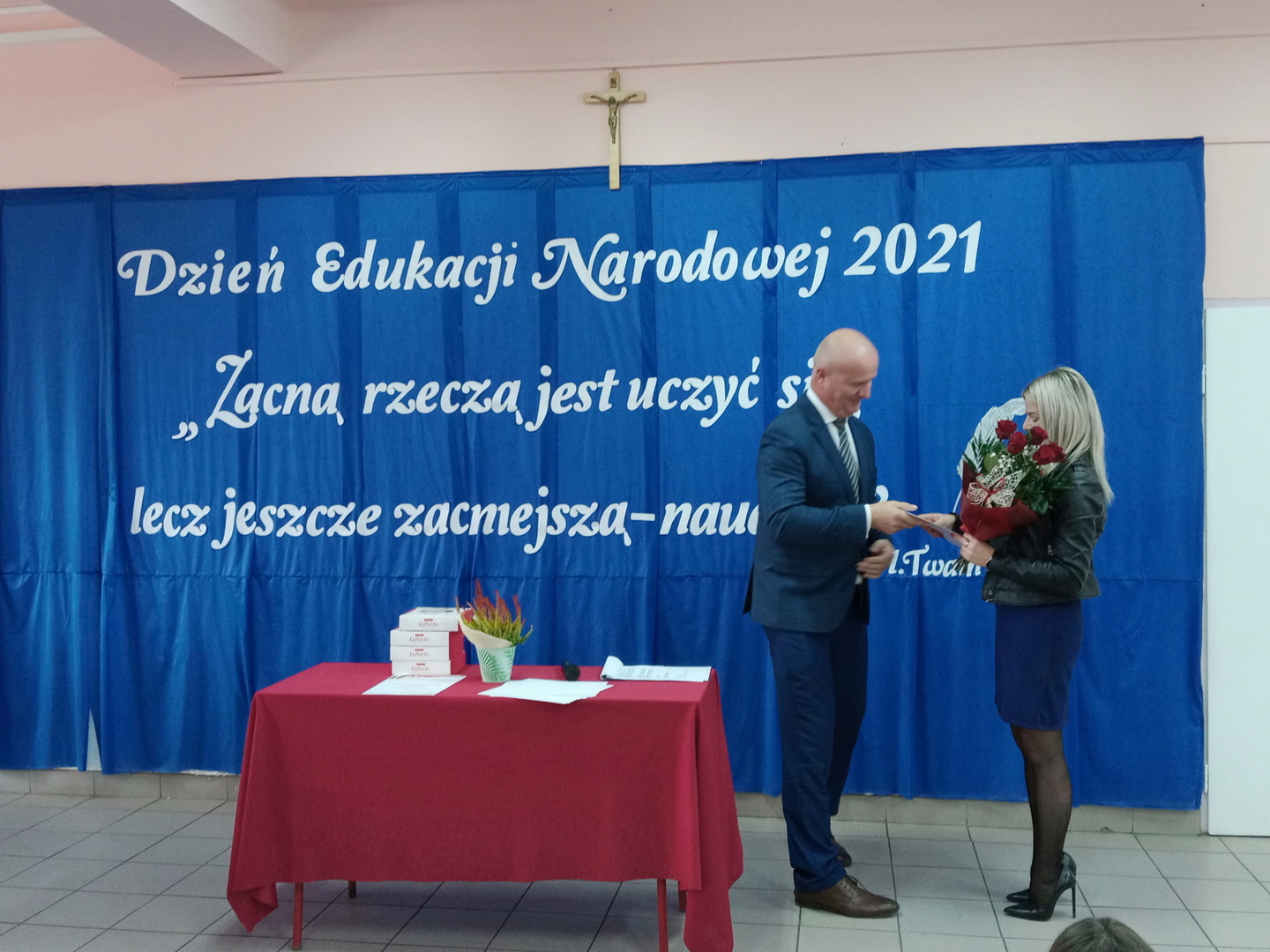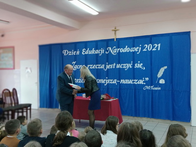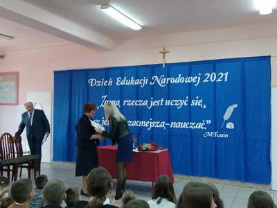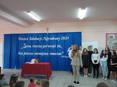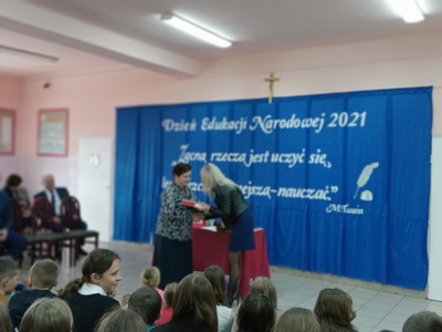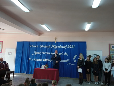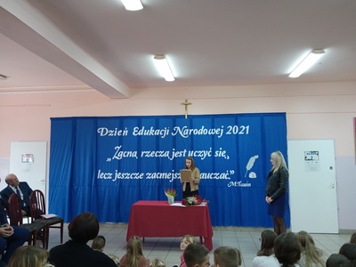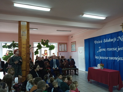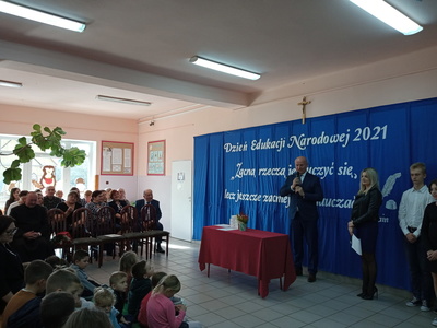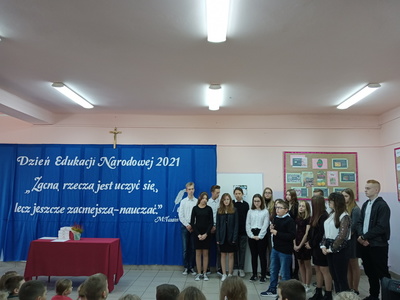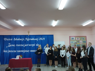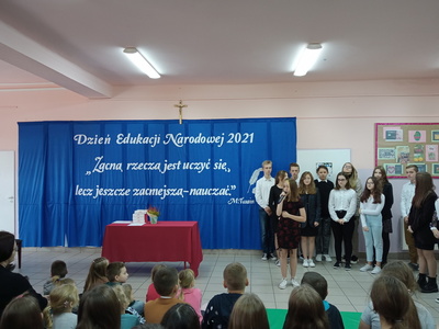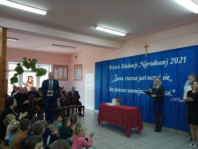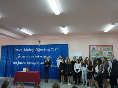 Na początku mszę świętą odprawił ks. Piotr Wąsek. Następnie – w szkole odbył się montaż słowno- muzyczny przygotowany przez uczniów klas VIII, VII i V pod opieką M. Kwiatkowskiej i M. Lewandowskiej. Zaprezentowano krótką historię Dnia Edukacji, a piosenkami płynącymi z głębi serca i serdecznymi życzeniami wykonawcy w imieniu wszystkich uczniów podziękowali dyrekcji, nauczycielom i pracownikom obsługi za codzienny trud, zaangażowanie w procesie edukacyjno-wychowawczym młodego pokolenia Blinowa.