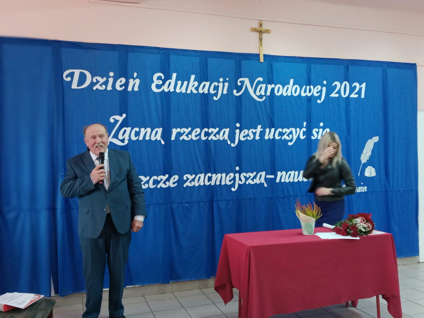 Miłe wrażenie wśród uczestników wywołało wystąpienie byłego nauczyciela geografii pana Jana Sulowskiego, który ze wzruszeniem dziękował za możliwość uczestniczenia w obchodach DEN po raz pierwszy od momentu przejścia na emeryturę. Bardzo cieszył się z faktu, że ponownie może się spotkać z nauczycielami , którymi pracował w szkole i może poznać nowych pedagogów, a także poczuć bliską obecność uczniów.