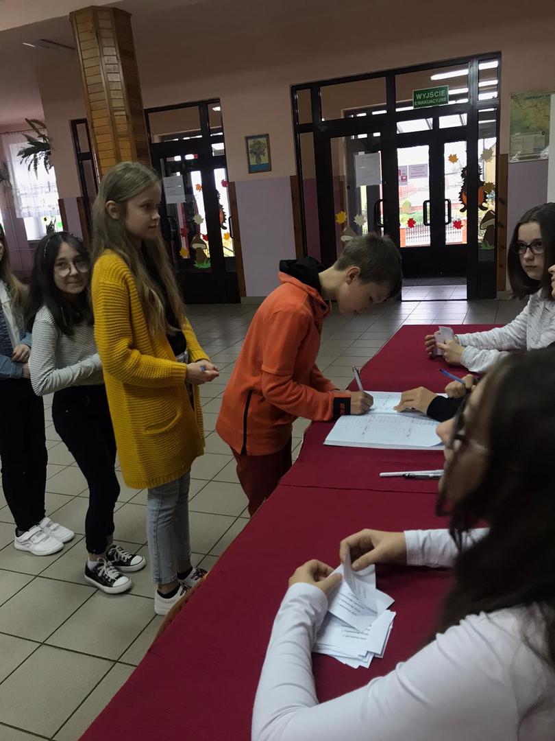 W dniu 13 października 2021 r. przeprowadzone zostały w naszej szkole wybory do prezydium Samorządu Uczniowskiego. Uprawnieni do głosowania byli wszyscy uczniowie szkoły z wyjątkiem klasy pierwszej. Wzięło w nim udział 72 osoby wybierających swoich przedstawicieli spośród 5 kandydatów. Wszystkie głosy były ważne. Komisja wyborcza w składzie: Wiktor Wereski z kl. VIII, Paulina Kiełb z klasy VIII, Ewelina Pastucha z kl. VII, Julia Krawczyk z klasy VIII oraz opiekun SU: Kamila Żak - Zasuń, czuwała nad prawidłowym przebiegiem głosowania i po jego zakończeniu dokonała obliczeń głosów.