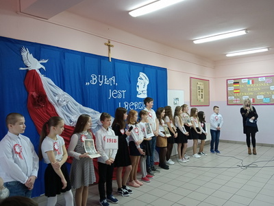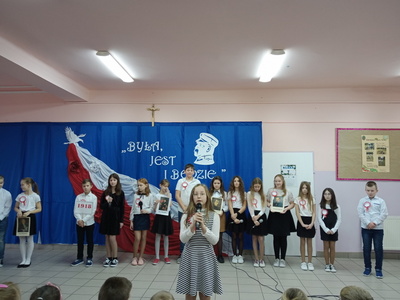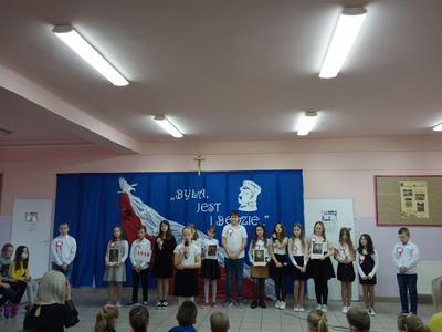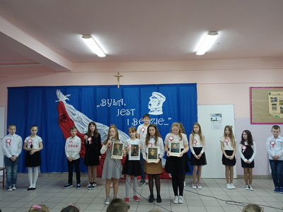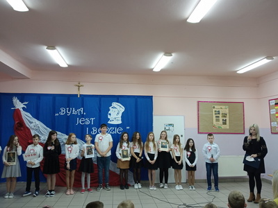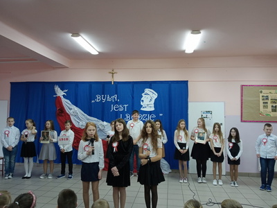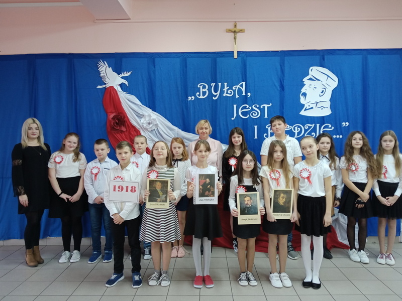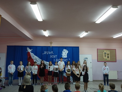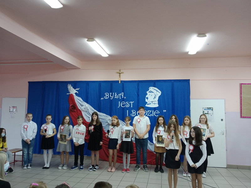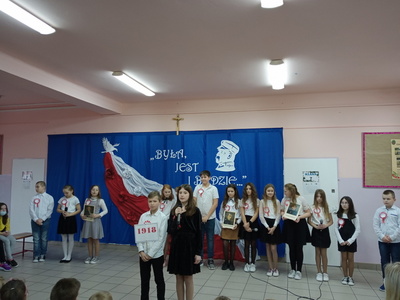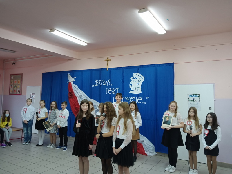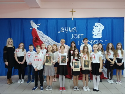 Dnia 15 listopada 2021 roku społeczność naszej szkoły wzięła udział w uroczystej akademii z okazji 103. rocznicy odzyskania przez Polskę niepodległości. Uczniowie z klasy IV pod opieką Pani Joanny Niezgody przygotowali montaż słowno-muzyczny pt. „Była, jest i będzie…”. Część artystyczna wprowadziła zgromadzonych w atmosferę wydarzeń poprzedzających datę 11 listopada 1918 roku. Recytowane wiersze patriotyczne pozwoliły zrozumieć rozterki i uczucia walczących o wolność. Pieśni patriotyczne ukazały ducha narodu polskiego, który w czasie 123 lat niewoli stale wychodził z inicjatywą walki o Ojczyznę.