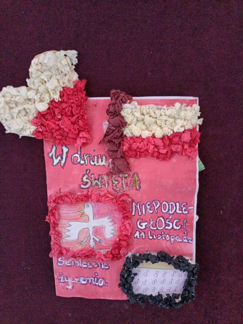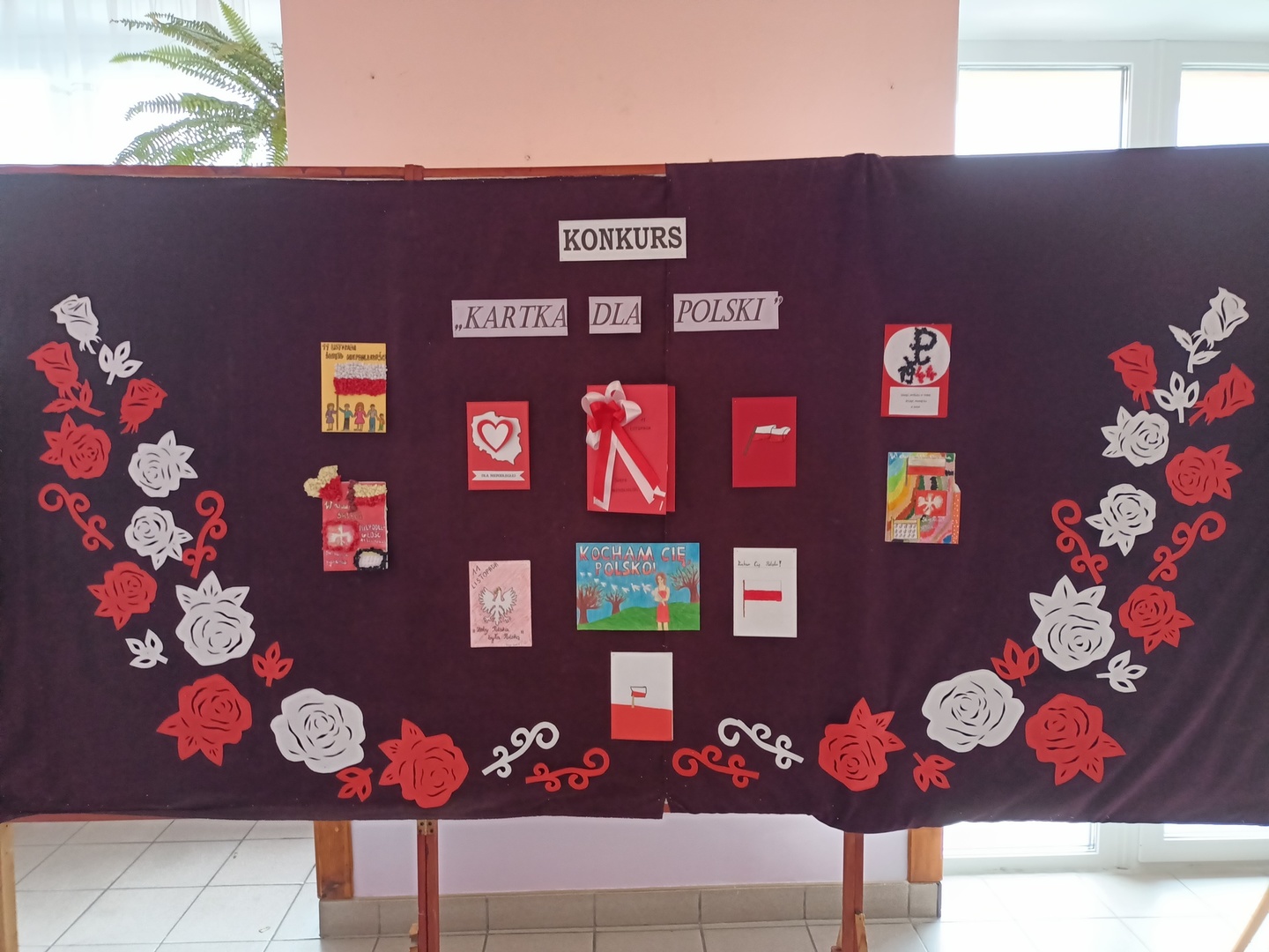 W listopadzie 2021 roku uczniowie z klas I-VIII brali udział w konkursie „Kartka dla Polski”. Celem konkursu było włączenie dzieci i młodzież w obchody Święta Niepodległości, wzmocnienie tożsamości narodowej, a także rozwijanie aktywności twórczej uczniów. Zadaniem uczestników konkursu było wykonanie kartki pocztowej – życzenia dla Polski.