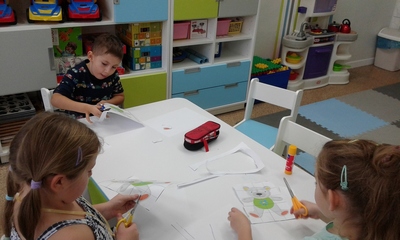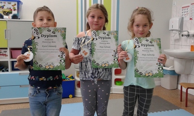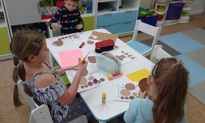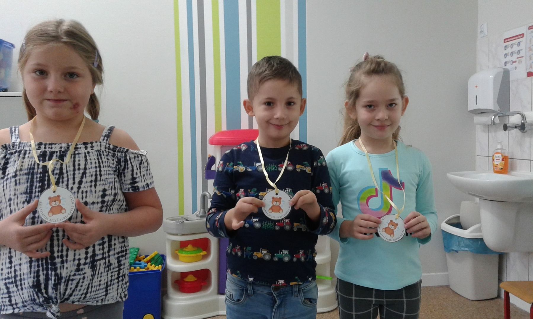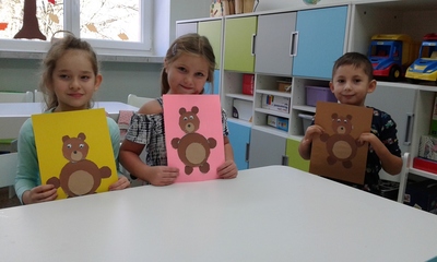 W sali przedszkolnej nie było już tak chłodno, atmosfera bardzo gorąca, pomimo nieobecności „pluszaków”, niestety pozostawionych w domu. Z racji pandemii, trzeba było zadowolić się balonikami w kształcie misia i trochę z nimi potańczyć. Potem zabawy badawcze, które pozwoliły poznać historię powstania tej zabawki i jej ewoluowania na przestrzeni minionych lat. Prezentacja i obejrzane filmy miały wpływ na poprawne wykonanie zadań w kartach pracy, ułożenie puzzli czy wykonanie pięknych misiów z kół. Po wysiłku umysłowym trzeba było się posilić, a do tego wyśmienicie nadawały się, przygotowane przez rodziców, pyszne ciasteczka i zdrowy soczek. I tak zabawa dobiegła końca. Jeszcze tyko ostatni taniec, odznaki, pamiątkowe dyplomy i pora wracać do domu. Może trochę smutno, że już koniec, ale od czego są wspomnienia. Ich nikt nam nie odbierze.