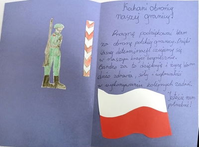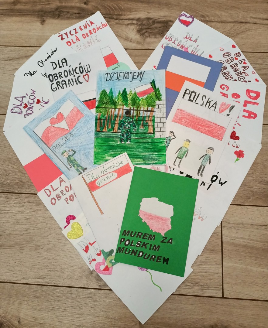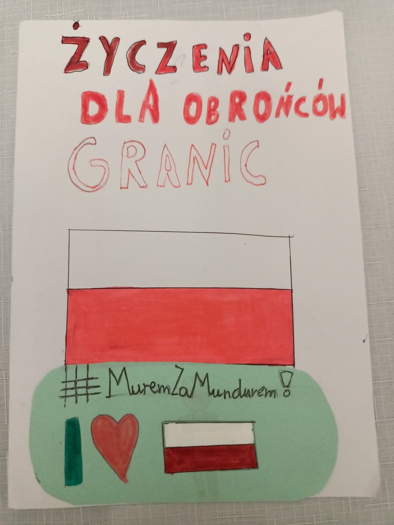 Uczniowie naszej szkoły chętnie wzięli udział w akcji „Kartka dla obrońców granic” zorganizowanej przez Fundację Niepodległości, której patronuje Radio Lublin. Wykonane przez uczniów kartki-laurki wyrażały podziękowania i wsparcie dla żołnierzy wojsk operacyjnych Sił Zbrojnych RP, żołnierzy Wojsk Obrony Terytorialnej, funkcjonariuszy Straży Granicznej oraz Policji, którzy pełnią trudną służbę w zagrożonych miejscach na wschodniej granicy naszego kraju. Te i inne okoliczności sprawiają, że szczególnie ważne są dla nich obecnie wyrazy społecznego wsparcia. Uczniowie świetnie orientują się w obecnej sytuacji, z wielkim entuzjazmem dzieliły się swoimi refleksjami. Z dużym zaangażowaniem także przystąpiły do wykonywania laurek. Wszystkie prace zostały wysłane i na pewno będą miłym wsparciem dla pełniących służbę na granicy Polski.