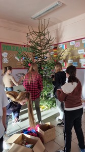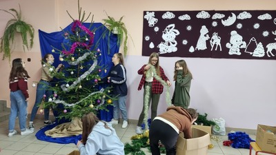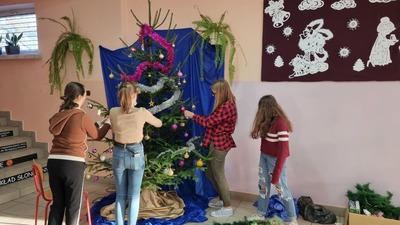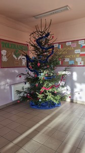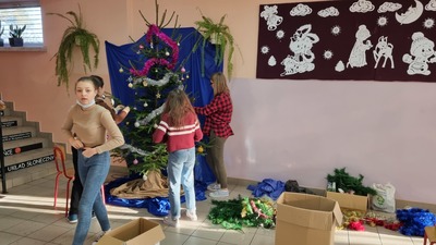 Czas Świąt Bożego Narodzenia wiąże się z tradycją ubierania choinki. W naszej szkole nie mogło zabraknąć tego rytuału. Uczniowie zawieszali bombki, gwiazdki, łańcuchy, kolorowe światełka i aniołki. Ustawili również Szopkę Bożonarodzeniową. Świąteczne drzewka i Szopka wyglądają prześlicznie i wprowadziły magiczny nastrój w naszej szkole.