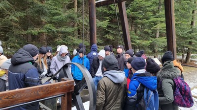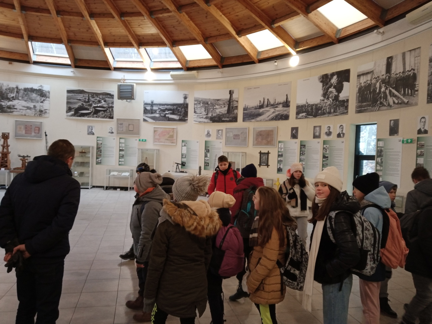 Wyruszyliśmy autokarem spod szkoły punktualnie o godzinie 5.30. Pierwszym punktem programu było Muzeum Przemysłu Naftowego i Gazowniczego w Bóbrce, gdzie dotarliśmy na godz. 9.00. Wizytę w Skansenie rozpoczęliśmy od zwiedzania najstarszych zabytków. Zobaczyliśmy dwa szyby naftowe „Franciszek” i „Janina”. Dowiedzieliśmy się, że kopane były ręcznie i czynne są do dziś. Niezwykłe wrażenia czekały na nas w Domu Łukasiewicza, w którym obejrzeliśmy multimedialną ekspozycję. Specjalnie przygotowane widowisko, słuchowisko, dźwięk pracujących urządzeń oraz charakterystyczny zapach – pozwoliły nam przenieść się do minionych czasów. Mogliśmy zapoznać się z pracą aptekarza sprzed 160 lat oraz „usłyszeć i zobaczyć” samego Ignacego Łukasiewicza podczas przeprowadzania eksperymentu w swoim laboratorium.