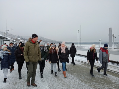 Drugiego dnia wycieczki naszym celem była zapora Solińska, która jest największą budowlą hydrotechniczną w Polsce o długości 664 m. Wczesnym rankiem wraz z przewodnikiem przespacerowaliśmy wzdłuż zapory, wysłuchaliśmy historii powstania zbiornika i zakupiliśmy pamiątki, m.in. słynne bieszczadzkie anioły. Później pojechaliśmy na zaporę w Myczkowcach i do Bóbrki koło Soliny. Tam, wyszliśmy na wzniesienie nieczynnego już kamieniołomu i przez chwilę podziwialiśmy cudowne widoki Bieszczadów. Kolejnym etapem wycieczki było zwiedzanie Ruin Klasztoru Karmelitów Bosych w Zagórzu.