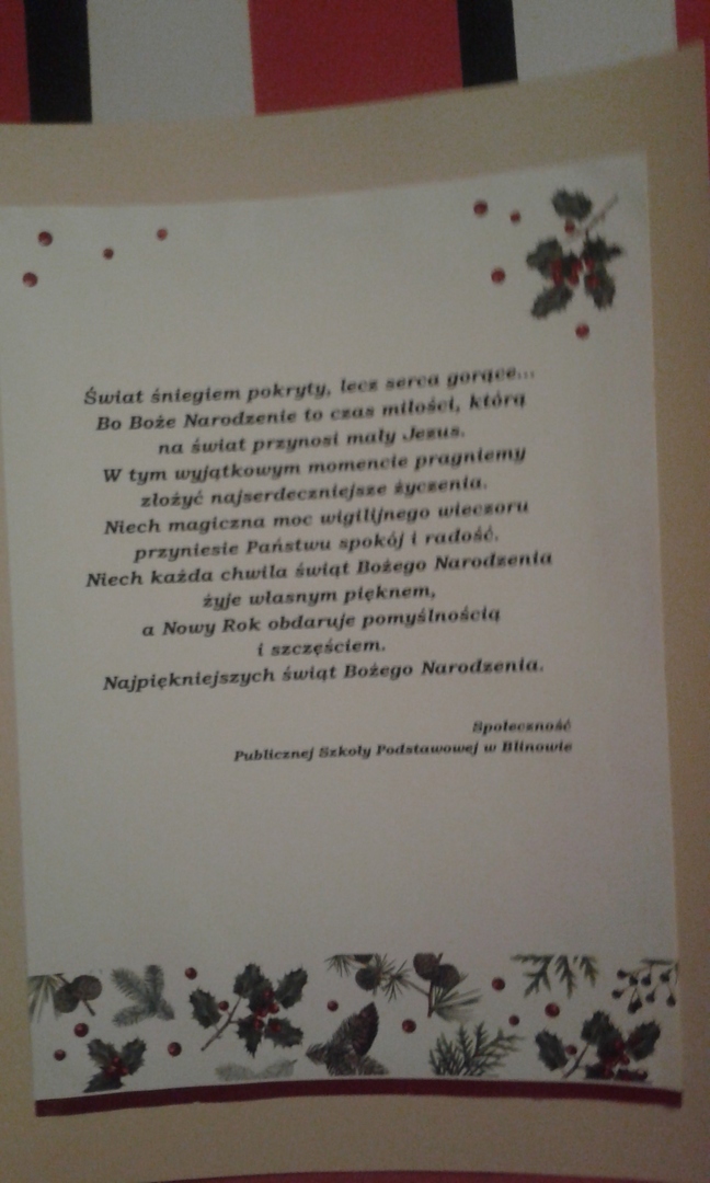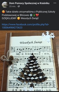 Przedświąteczny okres jest czasem szczególnym. Wiele osób oczekuje wtedy wsparcia i pomocy. Wychodząc naprzeciw tym oczekiwaniom, warto włączać się w różnorodne akcje. Bo nawet drobny gest potrafi zdziałać cuda, a w nas kształtuje poczucie odpowiedzialności za drugiego człowieka. Przedszkolaki z naszej szkoły doskonale o tym wiedzą. Wzięły więc udział w akcji Ministerstwa Edukacji i Nauki „Razem na Święta.” Wraz z wychowawczynią wykonały kartkę świąteczną dla pracowników i podopiecznych Domu Pomocy Społecznej w Kraśniku.
