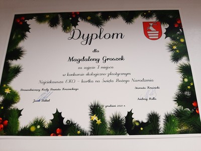 17 grudnia 2021 roku odbyło się w Kraśniku rozstrzygnięcie konkursu ekologiczno - plastycznego na najciekawszą „EKO – kartkę na Święta Bożego Narodzenia”. Organizatorem konkursu był Wydział Rolnictwa i Ochrony Środowiska Starostwa Powiatowego w Kraśniku. Konkurs miał na celu zwiększenie świadomości ekologicznej, wtórne wykorzystanie odpadów jako tworzywa artystycznego w plastyce oraz propagowanie idei życia proekologicznego.