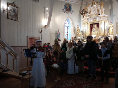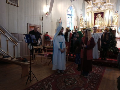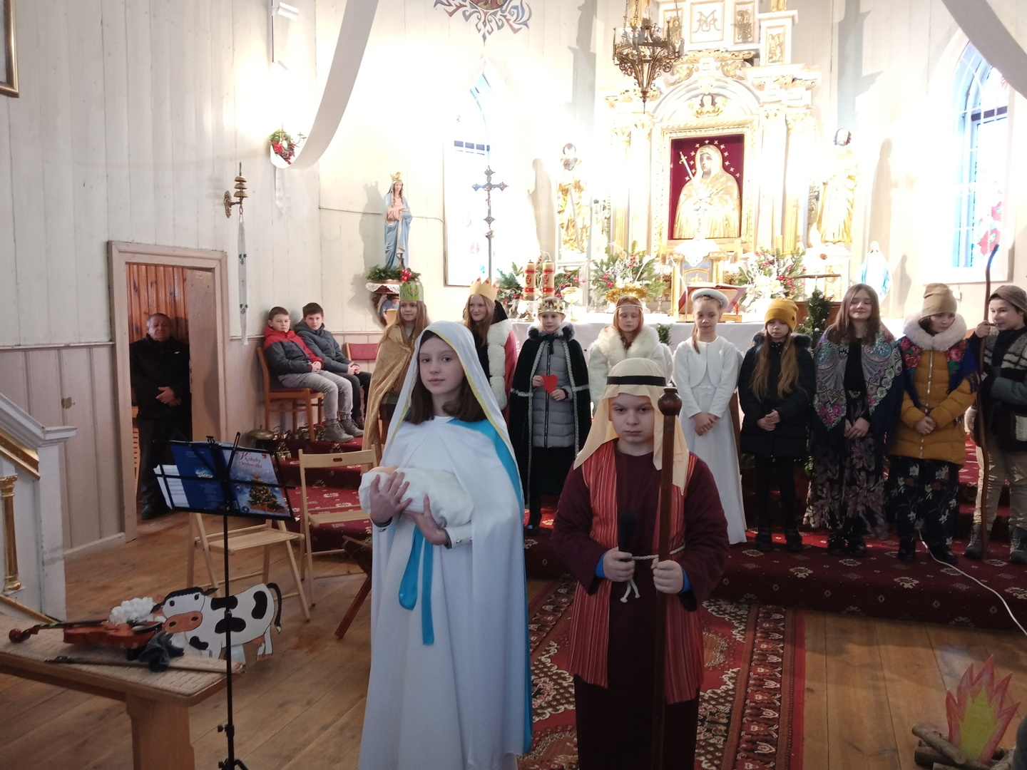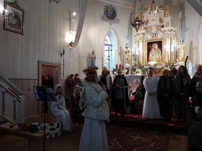 Tego dnia w kościele zagościł prawdziwy duch Świąt Bożego Narodzenia. Uczniowie przebrani w piękne stroje przedstawiły historię narodzin Jezusa oraz odśpiewały tradycyjne polskie kolędy.