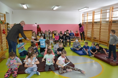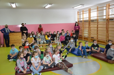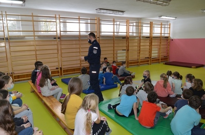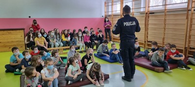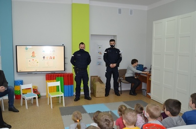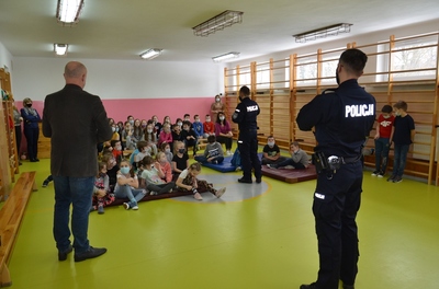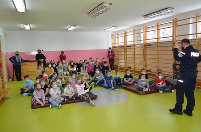 Panowie Policjanci sierż. sztab. Sebastian Janicki i mł. asp. Paweł Cieliczko Oficer Prasowy Komendy Powiatowej Policji w Kraśniku wraz z Panem Wójtem Gminy Szastarka Arturem Jaskowskim przeprowadzili pogadankę wśród dzieci z oddziałów przedszkolnych i uczniów klas I-IV. Tematem przewodnim spotkania było szeroko pojęte bezpieczeństwo dzieci i młodzieży podczas zimowego wypoczynku. Panowie policjanci uwrażliwili słuchaczy na niebezpieczeństwa kryjące się podczas nieodpowiedzialnego uprawiania sportów i zabaw zimowych. Przypomnieli o przykrych skutkach wchodzenia na kruchy lód, zjeżdżania na sankach, workach, nartach w pobliżu jezdni czy rzucania śnieżkami w okolice twarzy. Zwrócili także uwagę na niebezpieczeństwa wynikające z zawierania znajomości z dorosłymi bez nadzoru rodziców. Uczniowie utrwalili sobie zasady poruszania się po drodze oraz sposoby obrony przed atakiem groźnego psa. Uczestnikom spotkania przypomniano również o obowiązku noszenia elementów odblaskowych podczas poruszania się w porze wieczorowej i konsekwencjach związanych z nieprzestrzegania tego przepisu.