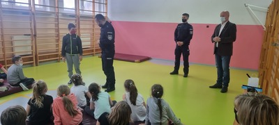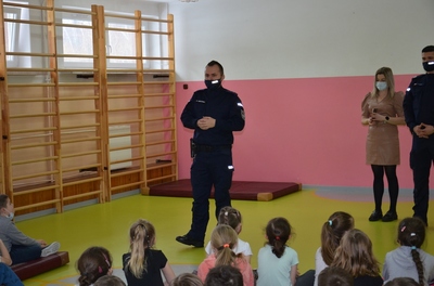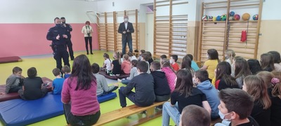 Serdecznie dziękujemy Panu Wójtowi oraz Panom Policjantom za poświęcony czas, współpracę oraz okazanie troski o bezpieczeństwo Naszych Dzieci. Wierzymy, że po wysłuchaniu rad, historii prawdziwych i tych wymyślonych przekazanych przez panów Nasi Uczniowie zawsze będą pamiętać, że dobra zabawa to bezpieczna zabawa!