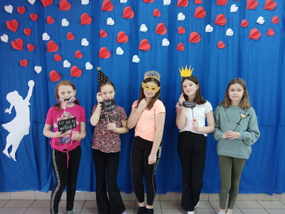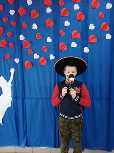Kolejną atrakcją tegorocznego karnawału była ścianka do zdjęć, która cieszyła się dużym zainteresowaniem wśród uczniów. Przy niej dzieci mogły wykonać sobie pamiątkowe zdjęcia z różnymi gadżetami. Niektórzy wybierali wąsy inni kapelusze sombrero a jeszcze inni korony. Uczniowie mieli przy tym wiele radości i zabawy.