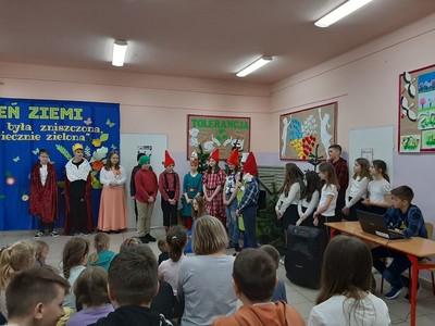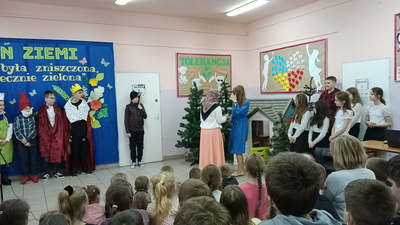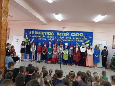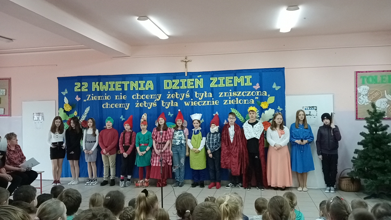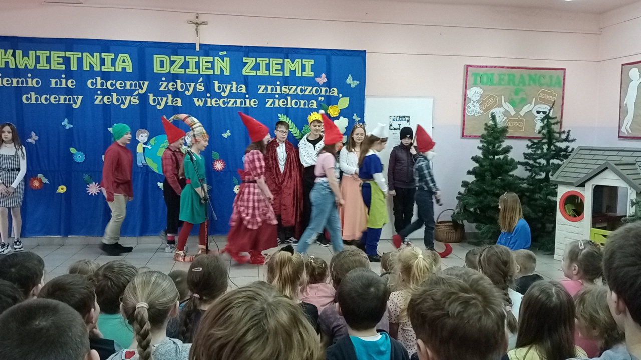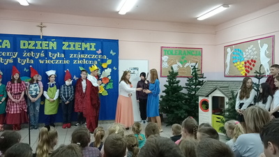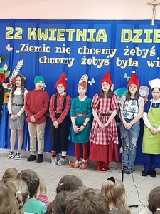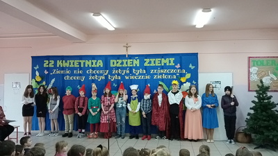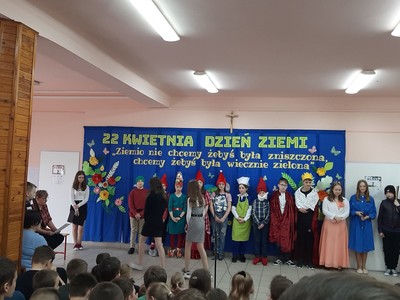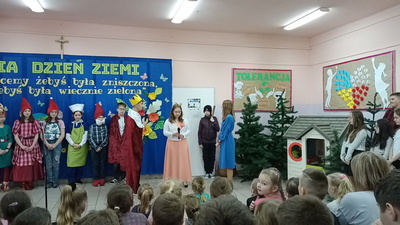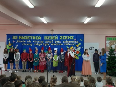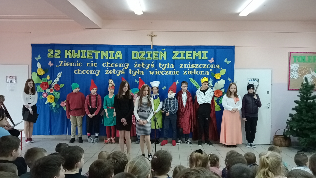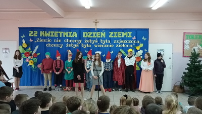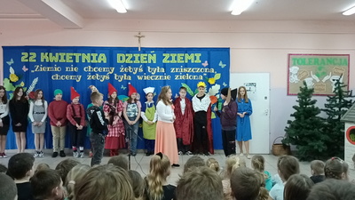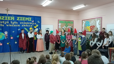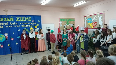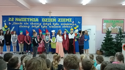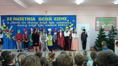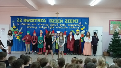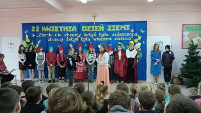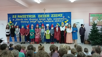 Jak co roku uczniowie naszej szkoły włączyli się w obchody tego święta. Dnia 22 kwietnia odbył się apel na którym uczniowie z klas IV - VI przypomnieli jak ważne jest życie w zgodzie z naturą w przedstawieniu ekologicznym pt. "Królewna Przyroda i siedmiu krasnoludków". Uczniowie w humorystyczny sposób wcielili się w bajkowe postaci uświadamiając, jak dużo możemy zrobić dla ochrony Ziemi sprzątając po sobie i pamiętając o segregacji śmieci.